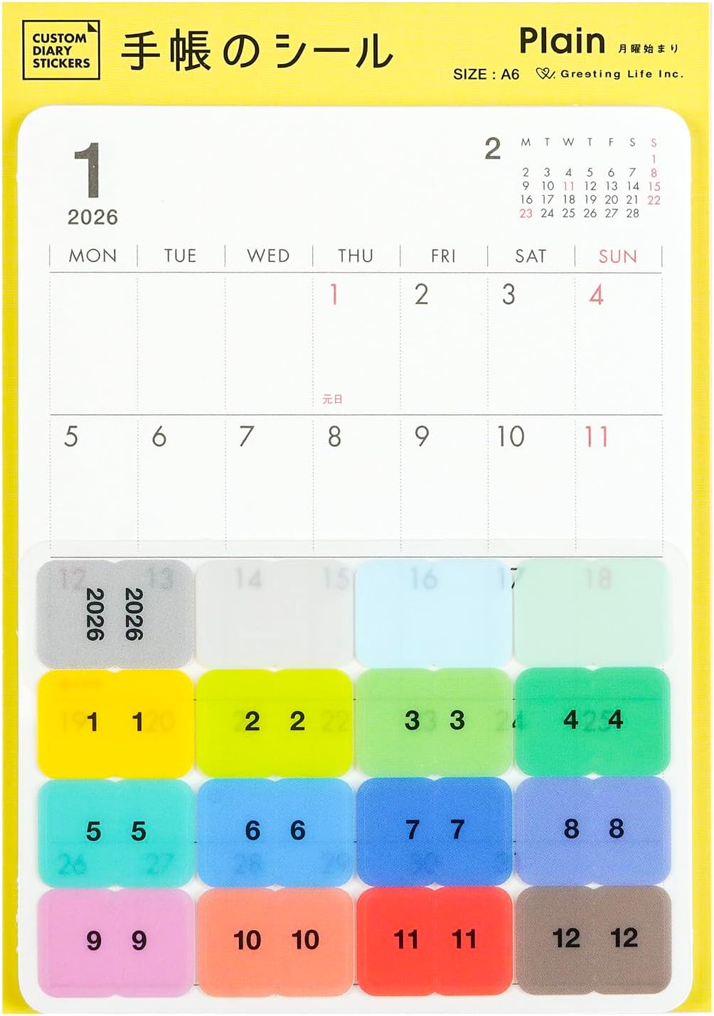 2026 日本 Greeting Life Custom 月計畫標籤貼紙 Plain A6
