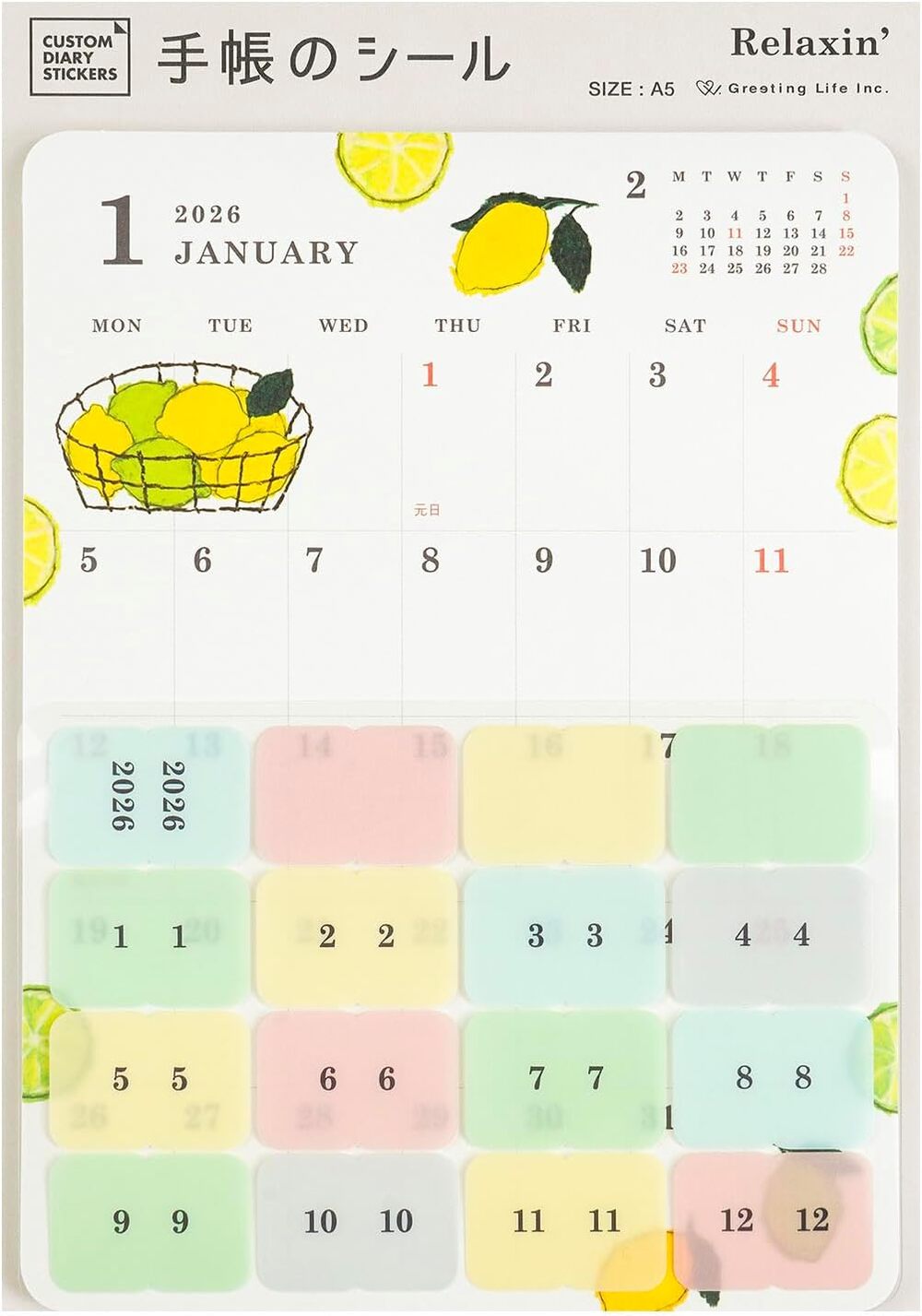 商品名 / | 2026 日本 Greeting Life Custom 月計畫標籤貼紙 Relaxing A5 |