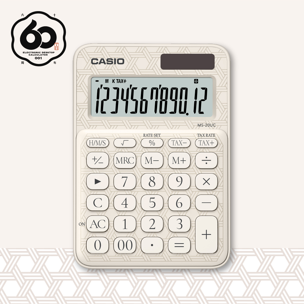 商品名 / | CASIO 60週年限定特仕版傳統和風紋樣計算機 12位元 竹編白 MS-20UC-JWE |