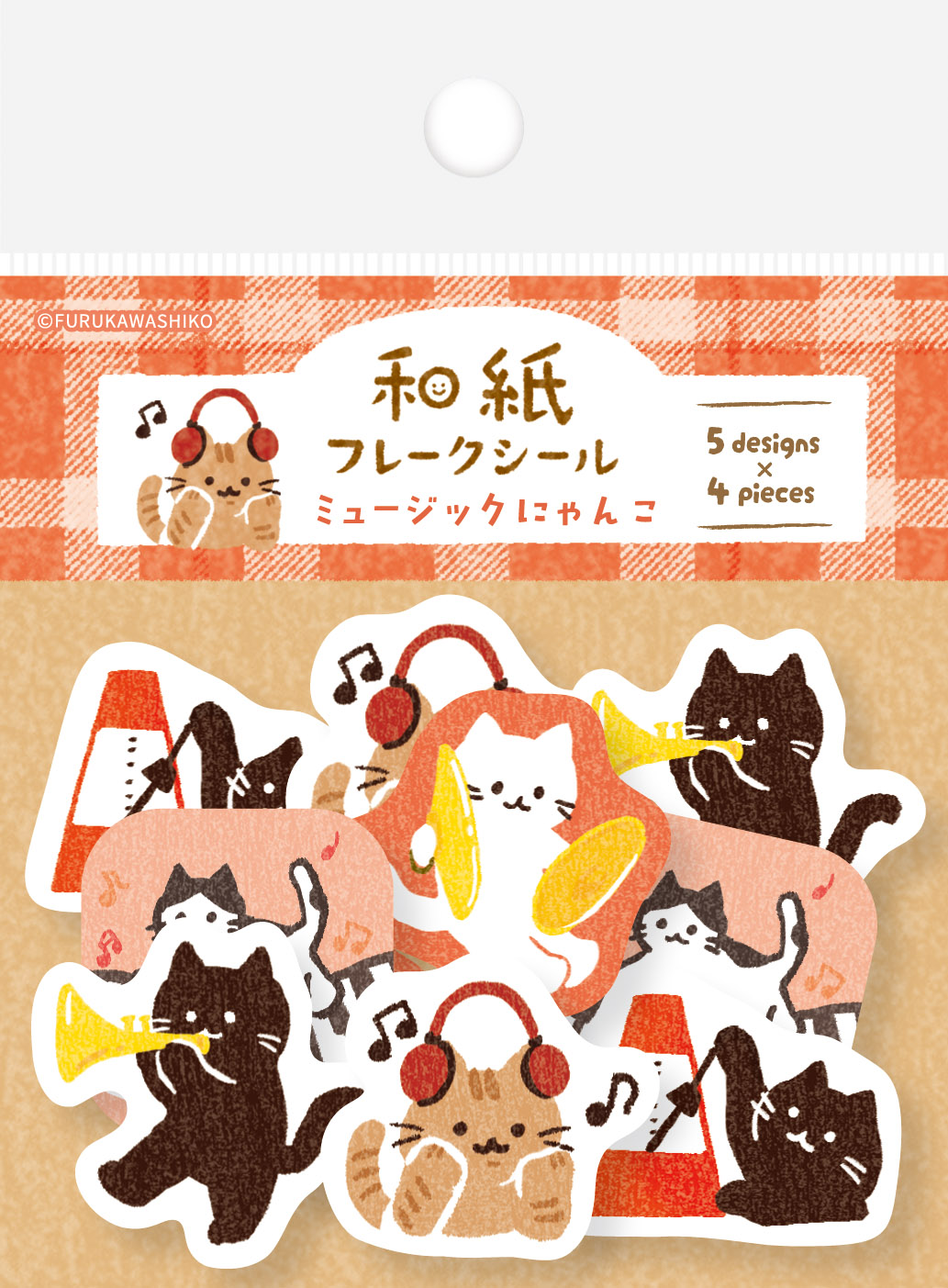日本 Wa-Life 和紙貼紙包 音樂貓咪 20入