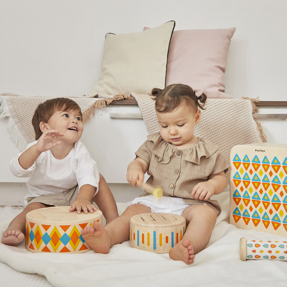 PLAN TOYS木作兒童樂器粉彩木質硬鼓