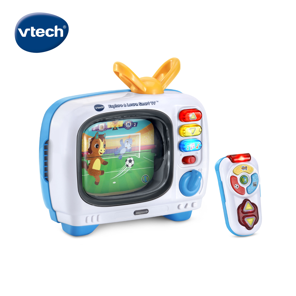 商品描述 | vtech雙語互動遙控學習小電視:復古造型電視玩具,內建10個頻道,包含各5個雙語節目(英語與西班牙語),遙控器可收納於電視側邊,方便收納不遺失。透過遙控器切換頻道,內 |