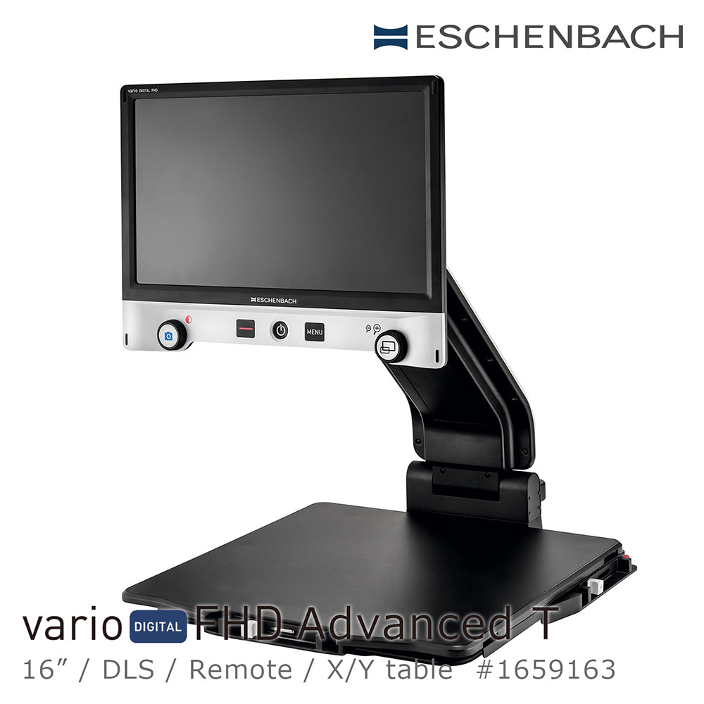 內容簡介 德國 Eschenbach 宜視寶 vario DIGITAL FHD Advanced T1.3x-45x 16吋高畫質折疊式桌上型擴視機 進階型T 1659163符合桌上型擴視機-B款■ 倍率範圍:1.3x-45x■ HD高速動態無殘影■ DLS動態水平垂直移動■ 大尺寸XY移動托盤■ LED 無影燈照明■ 折疊收納 方便移動■ 15種色彩模式■ 附遙控器 輕鬆控制■ 支援HDMI攝影機輸入產品介紹擴視機是由光學鏡頭與電子元件組成的電子式放大鏡,在歐美國家亦稱為 CCTV(閉路電視),透過鏡頭所呈現的成像為全平面,可以補足一般放大鏡片所產生的球面像差變形、反光問題,並可依照使用者的視覺敏感度切換色彩模式、亮度調整等。德國 Eschenbach 設計 vario DIGITAL FHD 系列桌上型擴視機,具備16吋大螢幕、15種色彩模式,適合長時間及大量閱讀需求的使用者,機身可折疊收納設計,讓舒適觀看不受限於單一位置,您可以從家中帶到辦公場所、會議室、圖書館等,並有多種規格以滿足各種需求。適合弱視、低視能(包含青光眼、黃斑部病變、白化症、先天視力發育不全、破碎視野、視覺多重障礙等)、職務再設計、長時間用眼工作者使用。產品特色16吋霧面高解析螢幕 高速運算處理器採用非反光式(non-reflective)LCD高解析螢幕,可有效減少螢幕眩光,畫面比例16:9,觀看更舒適。搭配新一代處理器,畫面成像細膩且移動時無殘影。適合居家長時間閱讀文件、報章雜誌,可摺疊收納,方便攜帶至會議室、論文收藏室使用等。提示導引線 特寫遮蔽欄vario DIGITAL FHD 系列擴視機可開啟提示導引線以及高對比度的特寫遮蔽欄功能,並調整位置與寬度,讓長時間使用者、閱讀障礙者、眼球震顫患者、白化症患者能減少跳行狀況。大尺寸XY移動托盤本產品具有XY托盤,可以將書籍、報紙平放在托盤上,用手移動托盤即可穩固平順地進行水平、垂直方向閱讀,並附有速度調節裝置,可依照個人閱讀速度進行調整。DLS 動態平移閱讀 (僅限進階型)DLS (Dynamic Line Scrolling)動態平移閱讀,使用2倍(含以上)的放大倍率時,可透過螢幕側邊箭頭按鍵操作讓畫面往左、往右、往上、往下平移,並可設定移動速度。支援 HDMI 裝置輸入 (僅限進階型)透過 HDMI 端子線連接 HDMI 攝影機,可將攝影機畫面轉至擴視機螢幕,進行望遠觀看。(需自備攝影機)Remote 遙控器控制 (僅限進階型)可透過原廠遙控器進行畫面移動、倍率調整、色彩模式切換、一鍵總覽等。化妝鏡模式 (僅限進階型)鏡頭可旋轉至使用者面前,螢幕影像將自動翻轉,可做為化妝鏡使用。色彩模式 螢幕亮度調整 照明光源調整vario DIGITAL FHD 系列共有15種色彩模式:真實色彩、白底黑字、黑底白字、黃底黑字、黑底黃字、黑底灰字、紫底黑字、黑底紫字、白底紅字、紅底白字、黑底藍字、黃底藍字、藍底黃字、綠底黑字、黑底綠字,可切換為使用者觀看較舒適的對比色。共有3段螢幕亮度調整:100% 75% 50%,畏光使用者可調整至較低亮度。共有3段照明亮度調整:100% 50%、0%,在光線充足的環境或紙張容易反光時,可將擴視機的照明光源降低或關閉,減少物件反光。可設定螢幕下方光源開關。機身折疊收納設計機身支臂可依照使用者觀看角度進行調整,以舒服的姿勢進行觀看。機身可完全折疊收納,附手提握把,可攜帶至其他場所使用。畫面凍結 SD記憶卡儲存可將目前觀看的畫面進行凍結,並可操作放大觀看、切換色彩模式。亦可儲存於SD SDHC 記憶卡內(最高支援至32GB)。100V-240V 全電壓設計 多國用插頭本產品透過專用電源供應器,可用於100V-240V 電壓。變壓器插頭可更換,隨產品內附美國、歐洲、澳洲、亞洲的插頭,方便使用者攜帶至其他國家使用。注意事項1. 請勿自行拆卸本產品,若經拆卸則無法進行保固。請使用原廠電源供應器。2. 請勿直接觀看擴視機的照明光源,可能造成眼睛傷害。3. 本產品屬於精密電子產品,請避免淋濕、泡水、強力撞擊、太陽照射等狀況,以確保產品使用壽命。4. 請勿使用揮發性清潔劑擦拭本產品。請用乾淨柔軟的布料進行擦拭即可。嚴重髒汙時可輕微沾水擦拭。產品規格原廠編號:1659163倍率範圍:1.3x-45x螢 幕:15.6吋(對角長39.6cm)螢幕比例:16:9螢幕對比:1000:1影像幀率:60 fps鏡頭解析度:Full HD鏡頭旋轉:可對焦方式:Auto Focus 自動對焦(焦距鎖定)、手動對焦(書寫模式)色彩模式:真實色彩、白底黑字、黑底白字、黃底黑字、黑底黃字、黑底灰字、紫底黑字、黑底紫字 白底紅字、紅底白字、黑底藍字、黃底藍字、藍底黃字、綠底黑字、黑底綠字螢幕亮度:3段(100%、75%、50%)照明光源:Shadow Free LED 無影燈照明調整:3段(100%、50%、0%)、螢幕下方照明、關閉提示聲音:2種提示音、5國語言人聲,可關閉聲音提示導引線:有,可調整位置、粗細特寫遮蔽欄:有,可調整位置、寬度畫面凍結:可畫面儲存:可,儲存於SD SDHC 記憶卡(最高支援至32GB)日期時間:可(24小時制 12小時制)化妝鏡模式:有XY移動托盤:有輸入端子:HDMI(影像傳輸)、USB Type-C(檔案傳輸、更新韌體)額定電壓:AC 100V-240V 50-60Hz DC 19V 2000mA額定電功率:(最高)16W供電方式:無法蓄電,僅以電源供應器供電適宜操作溫度範圍:10℃ ~ 40℃,濕度<80%適宜存放溫度範圍:0℃ ~ 60℃,濕度<80%產品尺寸:(收納時)長378x寬460x高132mm重 量:10kg附 件:電源供應器、轉接插頭(A型、C型、G型、I型)、遙控器、USB Type-C 端子線、8GB SD記憶卡、說明書、產品保固卡產 地:德國設計、中國大陸組裝產品保固:二年品牌介紹德國