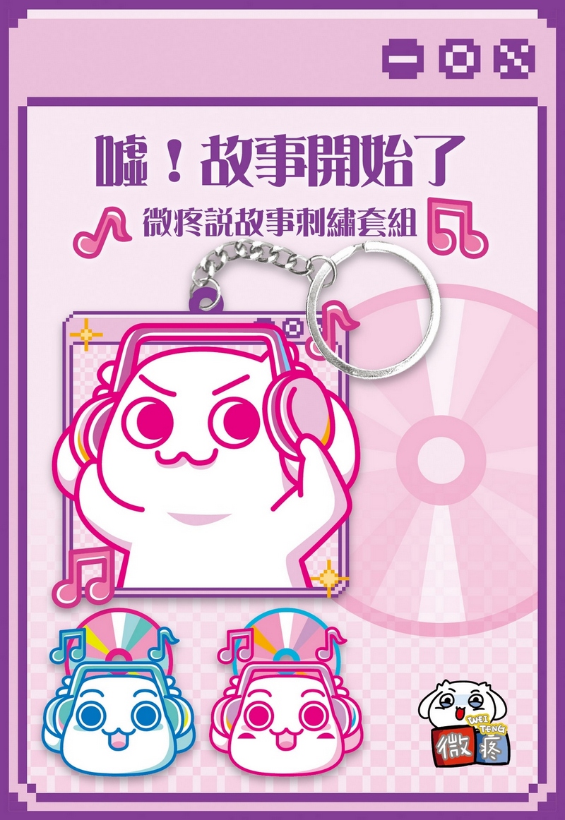 內容簡介 噓!故事開始了!精緻電繡工藝的微疼說故事套組 限量登場!!! 這次微疼戴上了耳機,想悄悄和你一起聽那個讓人背脊發涼的詭故事......隨身攜帶它,讓大家一眼看出:此人已進入著迷模式,請勿打擾(也請勿輕拍肩膀) 那個曾讓你邊笑邊冒冷汗、精準命中你情緒開關的插畫家「微疼」,正式從螢幕跳出來——成為你生活中小小開心的可愛存在。這次的微疼戴上耳機,成為「一起聽故事」吊飾,可以掛在你的背袋或包包上,也可以幫你保管鑰匙,時刻陪在你身邊。也有雙色款刺繡釦飾,隨時可利用鈕釦輕鬆拆裝,如上衣袖口、領口處,成為獨具一格的個人特色裝飾。當被微疼詭故事嚇到心跳加速時,它說不定還會在你耳邊小聲說:「別怕,現在由我守護你。」每件商品都用心採用精緻電繡工藝,不管是自己收藏還是送朋友,都超級療癒又有面子!快把這組「一起聽故事」刺繡角色帶回家,在雜音爆棚的生活裡,跟微疼一起擁有屬於自己的靜音時光。 【套組內含】❖「一起聽故事」刺繡吊飾(W7×H7.4cm ±5%)雙用設計:可以幫你保管鑰,也可作為包包吊飾,時時刻刻陪在你身邊。雙面美觀:正面為細緻刺繡,背面印微疼LOGO,翻哪面都給你滿滿的微疼!材質:繡線、斜紋布、金屬扣環 ❖「扣心之選」刺繡釦飾(W3.5×H4.2cm ±5%,二入組)雙色設計。利用「鈕釦」輕鬆拆裝,扣在上衣袖口、領口,當被詭故事嚇到心跳加速時,它會在你耳邊小聲說:「別怕,現在由我守護你。」材質:繡線、斜紋布