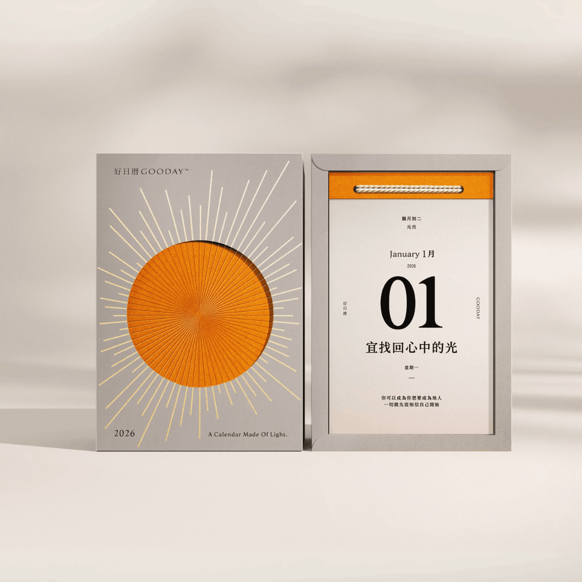 內容簡介 《好日曆與你的 2026》光,是一頁日曆光從太陽抵達地球需要 8 分鐘,但進到你心裡只需要 1 頁日曆2026 的作品,以流動的光作為設計靈感把「光」的祝福做成一份日曆,一本厚厚的日曆,乘載著一整年的時光與心意【6 大特點】1. 療癒光影燈箱,收錄生活裡的小小美好採用燙金工藝,在外盒上留下細膩的霧金光芒紋理可以放入對你來說有意義的一頁日曆喜歡的照片、或是帶著顯化期待的金句明信片是浪漫與實用性兼具的質感擺飾重點是:不用加價,每本日曆全部免費送2. 日出光暈漸層特殊油墨印刷,翻閱時感受不同的光線層次象徵文字是潛藏在生活的光走過 365 頁的美好,一起成為更好的自己3. 老派浪漫的手工裝幀好日曆堅持保有著能吊掛、能站立的特性每本日曆都是老師傅親手綁製確保吊掛時角度是最完美的!4. 加強撕線 日曆全新升級特別請印刷廠看了好幾個種版本的撕線與我們一版一版的測試,終於選到了能夠輕鬆撕下、不易殘留的撕線加工法5. 56 萬粉絲 IG 人氣作家|好日曆原創著作365 個原創生活指引、1 個剛剛好的自己超過 15,000 字,承載了未來一年美好的你還能收藏成冊做為 365 頁的解答之書6. 加碼頁數提早啟用,陪你倒數 20252026 限定企劃「年末倒數頁」在 2025 年底加碼 7 天日曆,讓好日曆陪你一起回顧與倒數