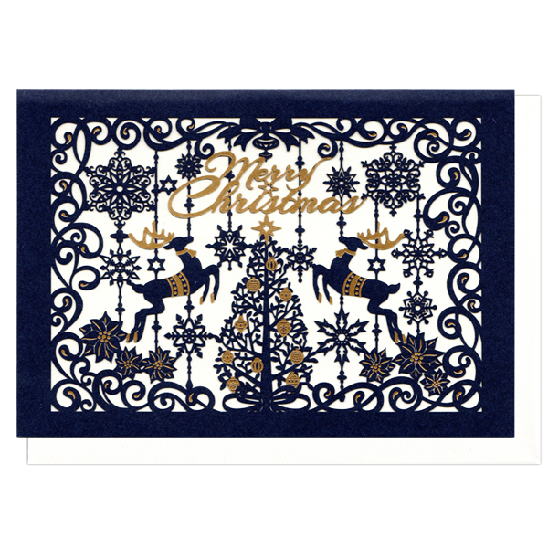 日本 Leaf Work Company 雷雕燙金聖誕卡 深藍 51-948