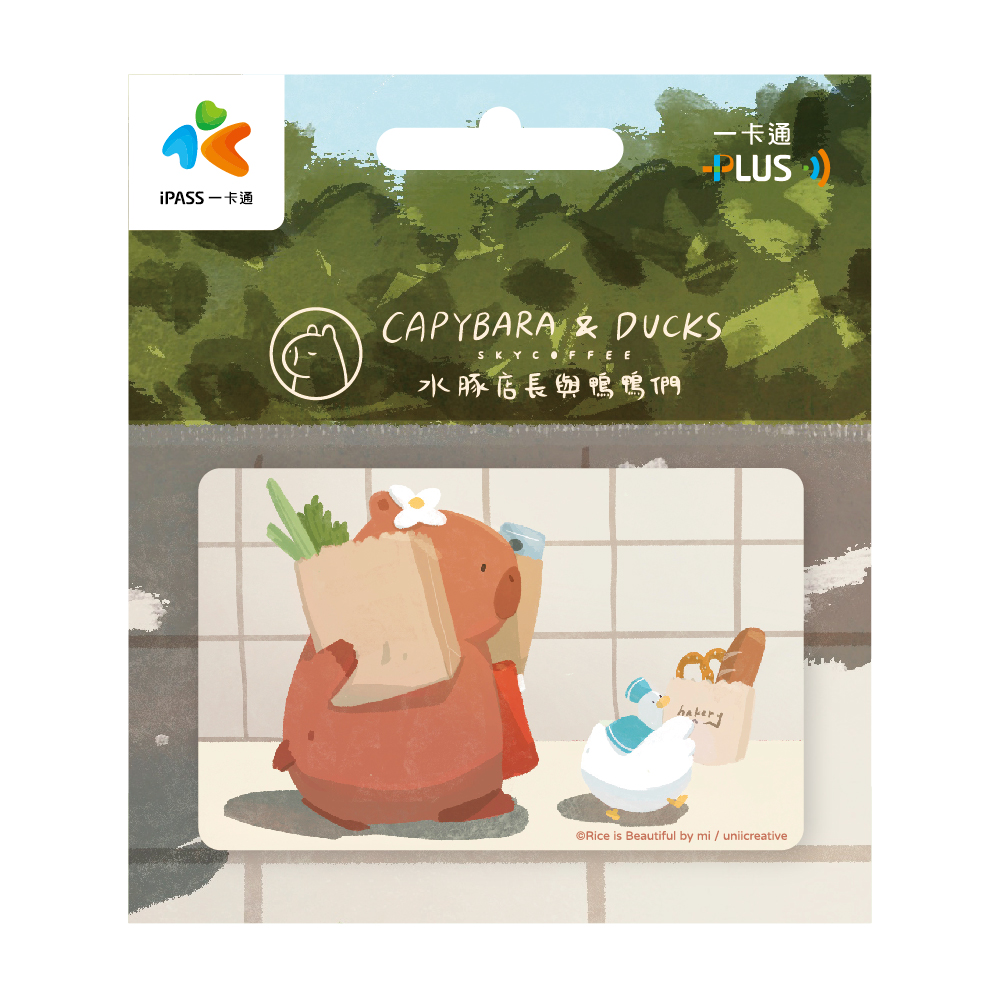 商品描述 | 水豚店長與鴨鴨們一卡通 滿載而歸 代銷:-可搭乘台北捷運等大眾運輸-可設定TPASS行政院通勤月票(南高屏/北北基桃不適用)-可於便利商店付款或儲值-支援iPASSMONEY手機感應加 |