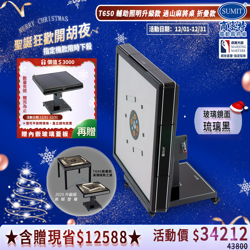 | 商品描述 | 【商密特】T650輔助照明進化版 過山電動麻將桌 折疊款 (玻璃鏡面系列 琉璃黑):《系列齊全、專營20年》2025輔助照明版亮眼登場/鏡面玻璃邊框美感更提升/新型理牌免輸送 |