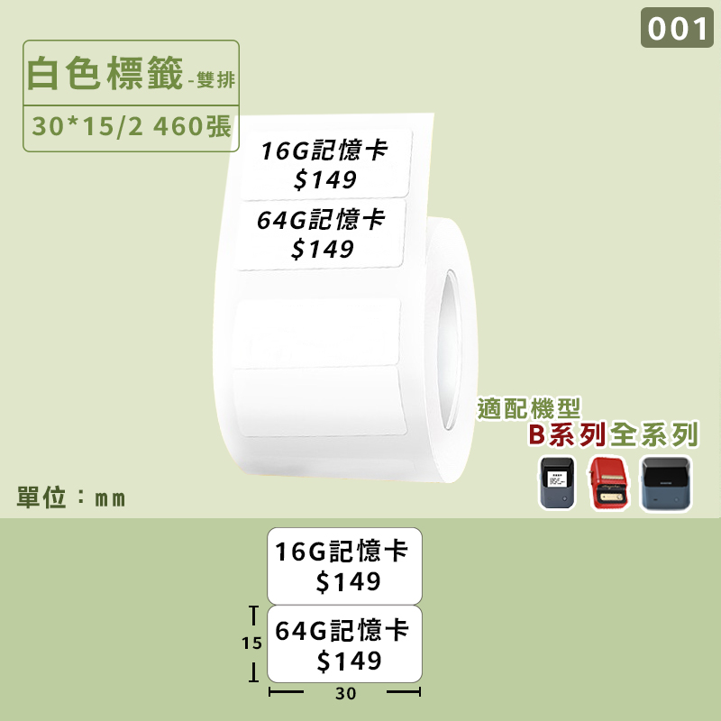 商品名 / | 精臣B系列標籤紙 白色 30*15mm 雙排 |