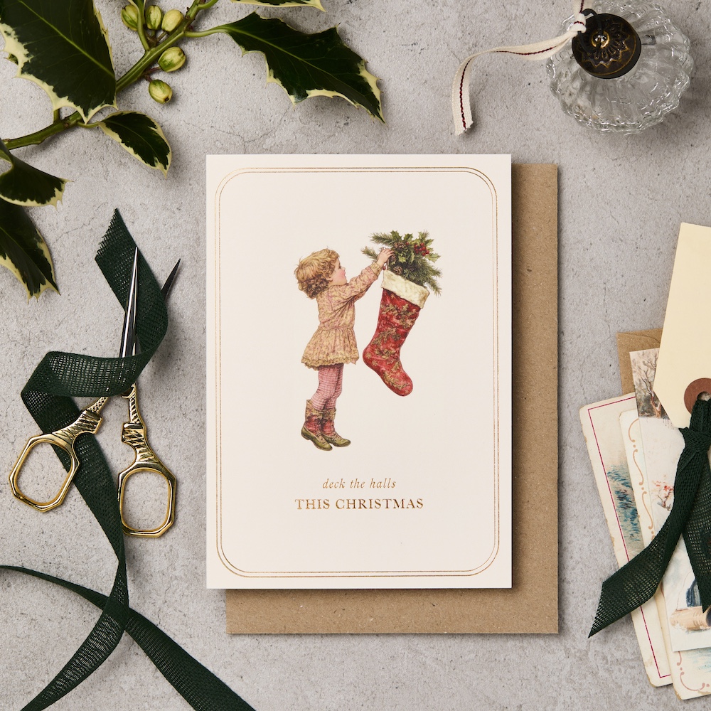 英國 Katie Leamon 聖誕卡 Vintage Stocking