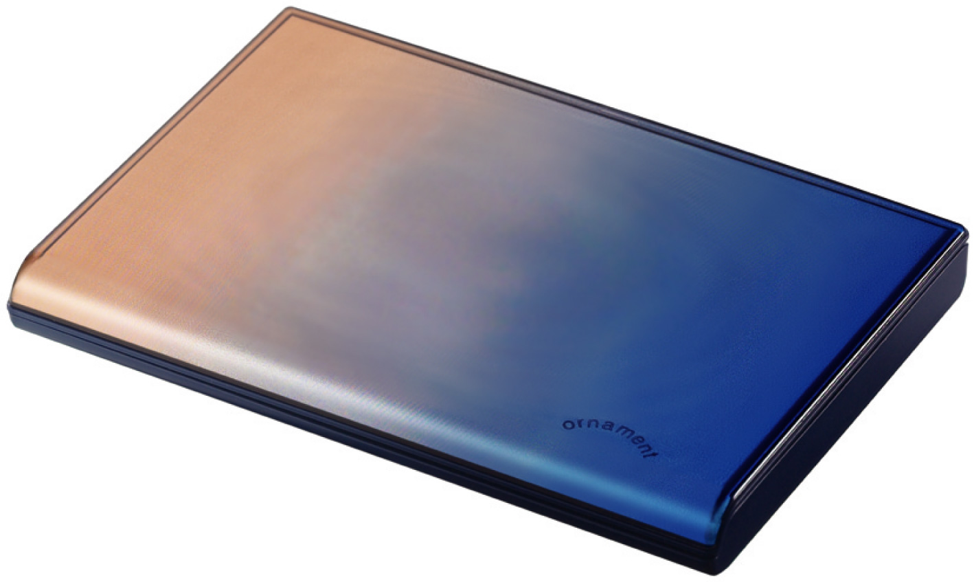 簡介 / | Ornament卡片盒 棕藍:這款名片盒擁有炫目精美的漸層外觀。深邃漸層色呈現效果源自吉田技術工坊全球首創的雙模內成型技術。握住名片盒兩側並輕輕按壓,微型減震器會緩慢打 |