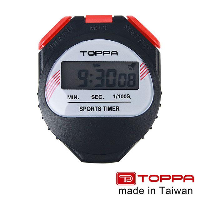 內容簡介 TOPPA #F606 台灣製競賽用運動電子碼錶 1 100秒 跑錶功能 跑錶狀態下,初始值00:00 00,最大計時:23小時59分59秒。初始以分、秒、1 100秒計時;60分後以時、分、秒計時,可記錄2組。 LAP 圈數計時 跑錶計時中,當跑者跑完第一圈,可顯示中途時間(SPLIT Time),內部仍繼續計時;當跑者跑完第二圈,操作後可再顯示目前總計時間,多次重複操作。 SPLIT分組計時 跑錶計時中,當第一位跑者抵達終點線時,可顯示第一位跑者時間,內部仍繼續計時。當第二位跑者抵達終點線時,操作後可再顯示第二位跑者時間。 注意事項 1. 本產品無防水功能,請避開雨天環境使用。請勿用於游泳、衝浪、潛水等水中使用。 2. 請勿長時間靜止暴露於高溫環境下,可能造成內部電路損壞。 產品規格 原廠編號:F606 最小計時單位:1 100秒 最大計時單位:23小時59分59秒 螢幕尺寸:長35x寬12mm 數據顯示:1排 分組記憶:O (2組) 防水性能:X 時制切換:O (12 24小時) 星期顯示:O 鬧鐘功能:O (可設定1組,具有4分鐘貪睡提醒功能) 使用電池:AG13 (LR44) 鈕扣電池*1 尺 寸:長60x寬70x厚20mm 重 量:45g 附 件:繁體中文說明書 產 地:台灣 品牌介紹 TOPPA品牌創立於1980年,堅持在台灣生產製造各種運動碼表、計時器。不同於坊間的廉價計時器,TOPPA選用的材質等級與產品密合度皆具高水準,為全球使用者提供最便捷又準確的計時產品。