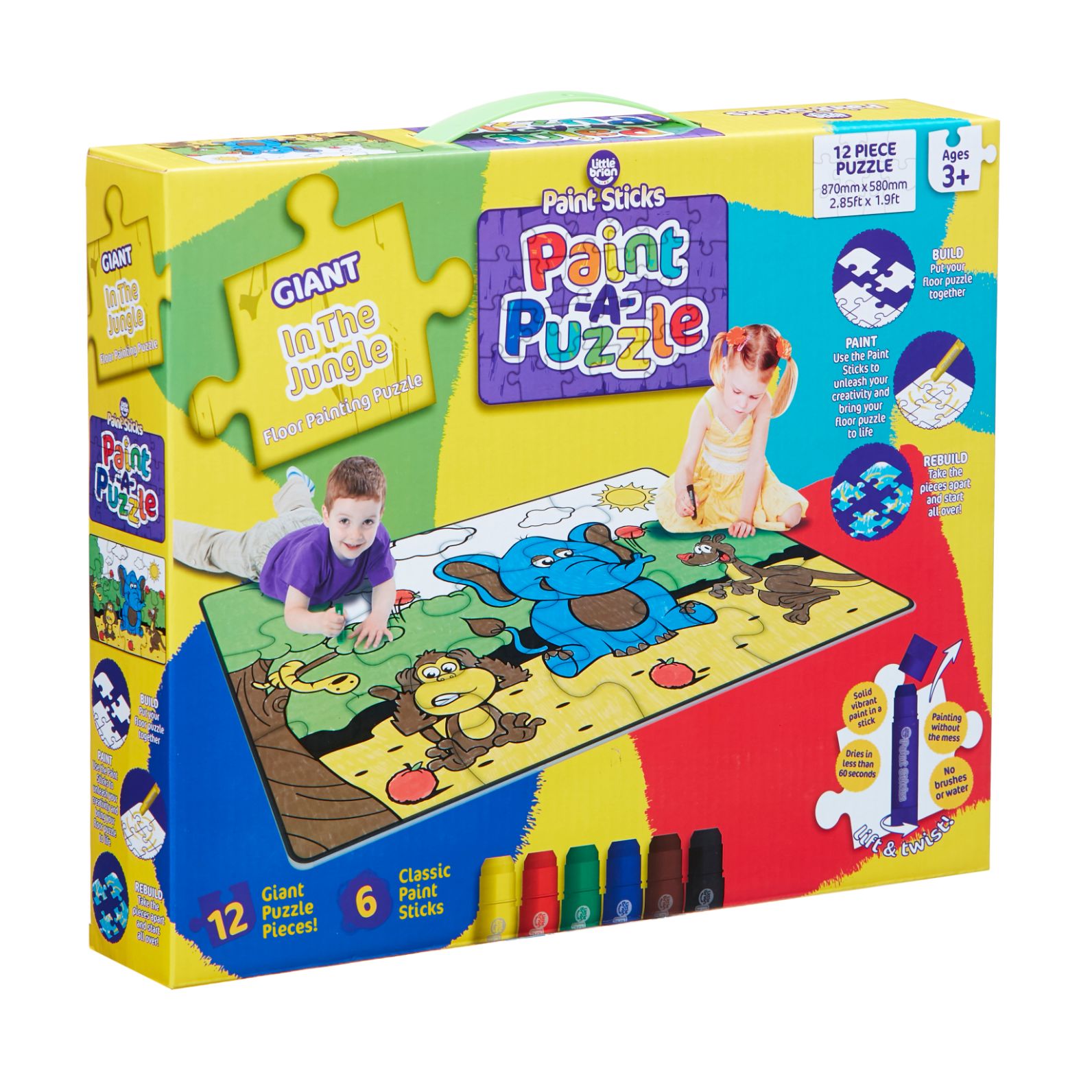 內容簡介 ★大支水彩棒適合大面積著色,畫自己喜歡的顏色,每個孩子的地板拼圖都獨一無二 ★引導想像力與空間概念 ★大尺寸拼圖,二個孩子一起畫也適合 ★同時畫畫與拼圖,孩子更喜歡 內容物: 大尺寸拼圖12片 經典水彩棒6支 *保證不含塑化劑及重金屬 *使用有機顏料,無毒安心 *筆管採用食器等級的5號PE塑料,可環保回收