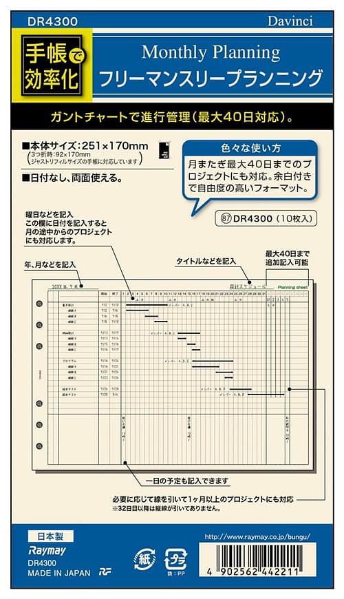 內容簡介 三折式月計劃無日期限制,可2面使用,充分留白、書寫自由度高。超長面積更適合一整個月份的規劃手帳專用紙製,單包10張入✰日本設計、製造、進口✰紙張為日本巴川製紙所特製的超薄印刷用紙,好寫不滲透,厚度約一般紙張的60%,可增加紙張容量。