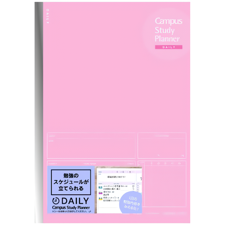 內容簡介 Campus計畫罫筆記本Campus計畫罫筆記本 的特色誰都有夢想,但你有決心擬定計畫嗎?夢想可能是得到好分數、可能是在夏天前減肥成功、可能是省旅費出國玩・・・但光擬定計畫就讓你不知道如何著手嗎? 日本第一品牌KOKUYO從學生身上得到靈感,發現學生為了得到好成績,需要針對不同科目擬定讀書計畫,但讀書都讀不完了,哪有時間慢慢畫格子安排讀書計畫?Q. 考前會訂立讀書計劃表嗎?有40.2%的學生回答:有立計畫表!另外有50.6%的學生回答:想立計畫表!(但因為麻煩、不知道該怎麼訂立計畫..等等原因沒有實際去做)*KOKUYO調查(n=727)自己手畫計劃表,既麻煩又費時!Campus計畫罫筆記本的使用方法 KOKUYO推出的「Campus計畫罫筆記本」都幫您把表格畫好了!接著只要照著格子填寫,就能讓你能很方便的擬定計畫,立刻開始執行,離夢想又更進一步! 在日本很流行將這些夢想計畫PO上IG,向群眾宣告決心,可勉勵自己不輕易放棄,也偶遇網路上默默努力的同伴,您要不要也試試看呢?第一步驟 目標設定欄確認目標,將目標文字化並寫下來,能幫助你釐清自己的方向。雖然是一個很簡單的事,但是是你踏出第一步的重要關鍵。舉例:我要在7 1前瘦到○○公斤! 我要在今年考到日文檢定N1!第二步驟 執行項目設定欄具體寫下為了要達成目標,需要做哪些事?舉例:要減肥的話,可能要設定每週運動排程,或者每週的減肥菜單。要學日文以出國打工留學的話,要設定每週的複習課表,單字的背誦…等等。第三步驟 24小時時程表甚麼時候,打算做哪一件事,用不同顏色的螢光筆或色鉛筆上色,具體寫下為了要達成目標,需要做哪些事?舉例:要減肥的話,可能要設定每週運動排程,或者每週的減肥菜單。要學日文以出國打工留學的話,要設定每週的複習課表,單字的背誦…等等。第四步驟 達成檢視欄左方格子你可以選擇自己的小圖案,例如:○代表有做到,△代表做的不是很好,→表示延後執行・・・等等。雖然只是寫上一個記號,但確實回想自己是否有做到,自我檢視並可視化,有助於鼓勵自己確實執行!右上方格子則是讓你寫入實際為了這個目標,所耗費的時間。比如是運動減肥計畫的話,可以配合實際體重下降程度,檢視這週的計畫是否有效率,或者應該換一種方式試試看。第五步驟 memo筆記欄每次的計畫都是深思熟慮後,才開始執行,但途中適時停下來反省,思考哪裏應該做修正,或者哪種方式是非常有效果的,可以更清楚地釐清自己想要什麼,也可同時避免了自身在達成夢想的路徑上繞了遠路。Memo筆記欄就提供您這樣的一個空間,可以反省今天,並朝著明天的自己喊話,明天的我會更好!4種不同的 Campus計畫罫筆記本一共有2種不同的計畫罫內頁,請依照您的需求,選擇最適合你的計畫罫夥伴。1.每日時間軸想一目瞭然地紀錄一整天的執行時間,推薦使用本款筆記本。特色是可以用螢光筆分色記錄的24小時時間表。 「每日時間軸」的5大特色: POINT① 目標設定欄首先決定並確實寫下目標吧。 POINT② 執行項目設定欄第二步,再將所有要執行項目,條列式寫下。 POINT③ 24小時時間表用螢光筆或色鉛筆將執行時間塗上顏色。技巧是用顏色分類執行項目,實際使用時間一目了然。 POINT④ 執行時間&確認欄將實際執行的結果用自己的方式打分數,例如達成是○,未達成是×,以檢視實際成效。 POINT⑤ memo欄Memo筆記欄可寫下當天的反省,或者給自己一句鼓勵的話,都是讓整個計畫更加成功的一步。共有3種封面顏色X 2種尺寸=6種選擇!2.週間時間軸這款週間式內頁,適合以一週時間為單位,管理夢想實現計劃或工作排程等。可同時確認日計劃與週計劃,因為可以直接俯瞰一整周的行程,才能更有效率的掌握所有零碎的時間運用。 「週間時間軸」的5大特色: POINT① 一週預定欄首先決定並寫下週間的執行項目及執行時間吧。 POINT② 一日預定欄第二步,再將一週間所有要執行項目,實際落到每日預定中。 POINT③ 24小時時間表用螢光筆或色鉛筆將執行時間塗上顏色。技巧是用顏色分類執行項目,俯瞰整周就一目了然。 POINT④ 執行時間&確認欄將實際執行的時間確實算出,方便檢視實際成效。 POINT⑤ memo欄Memo筆記欄可寫下當天的反省,或者給自己一句鼓勵的話,都是讓整個計畫更加成功的一步。Campus計畫罫筆記本才有的3大特色!!(1)封面亮面加工,LOGO則是有質感的霧面(2)筆記本更加方便收納,持續書寫則成讀書紀錄!(3)封面的顏色與內頁的顏色互相搭配Campus計畫罫筆記本推薦!有效達成目標的方法要達成目標,重要的就是…1.訂立計劃2.認真執行3.檢視成果三大黃金步驟,缺一不可1.利用Campus計畫罫筆記本立訂計劃表2.利用Campus點線筆記本,寫下蒐集來的資料筆記3.利用Campus計畫罫筆記本的檢視欄等欄位功能,回顧實際執行內容,確實檢視成效,並活用於下次的計畫中