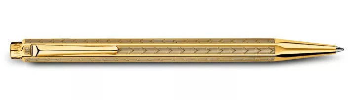 CARAN D'ACHE艾可朵V型麥紋原子筆 鍍金GLIT