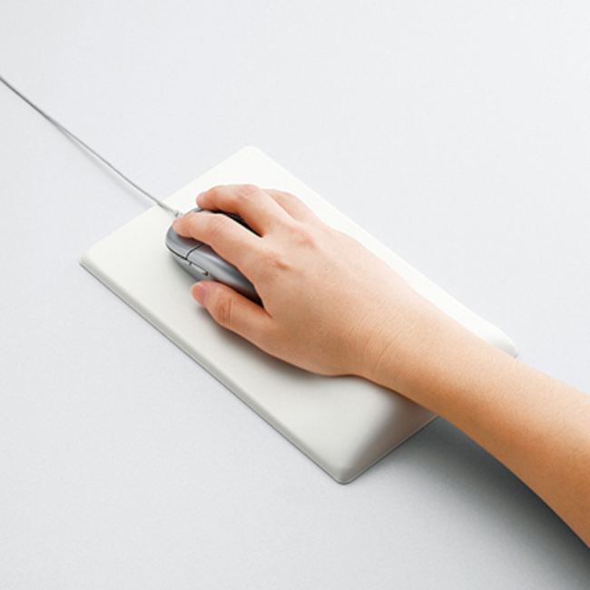 現代人不管男女老少,電腦早已是大家不可或缺的工具,為現代的社會帶來便利的生活。但另一方面,長期操作電腦,久而久之肩頸漸漸僵硬,手臂也開始酸痛,這是為什麼呢?ELECOM公司希望透過本中心開發出「能幫助減輕使用滑鼠產生疲勞酸痛的鼠墊」,以復健工學的角度,再次調查滑鼠操作方式。為了減輕壓力,本中心依照手腕自然放置在桌上時的角度位置來決定鼠墊的形狀‧材質,以下是舒壓鼠墊應有的重點: