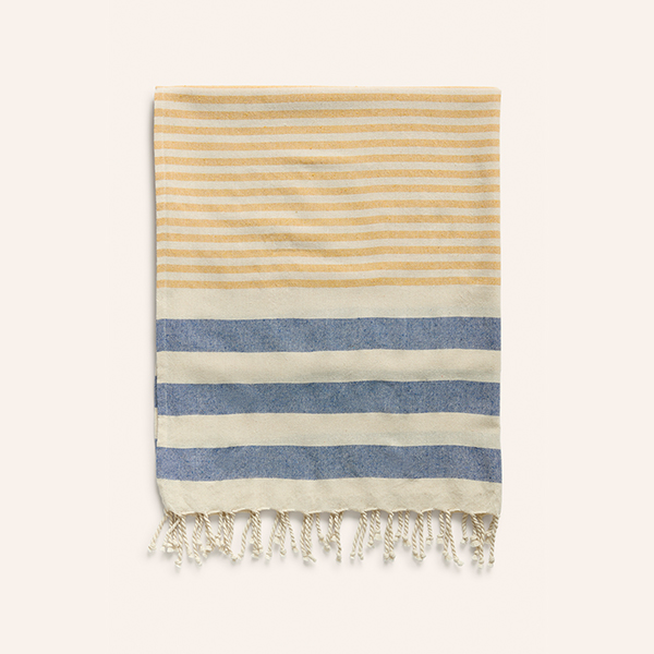 商品描述 | 西班牙 Calma House|渡假系列 條紋海灘巾|2色 黃藍:CalmaHouse以地中海文化為靈感設計之家居用品品牌,提供色彩、質地和產品的多樣性選擇;每項產品均由內部設計師在巴 |
