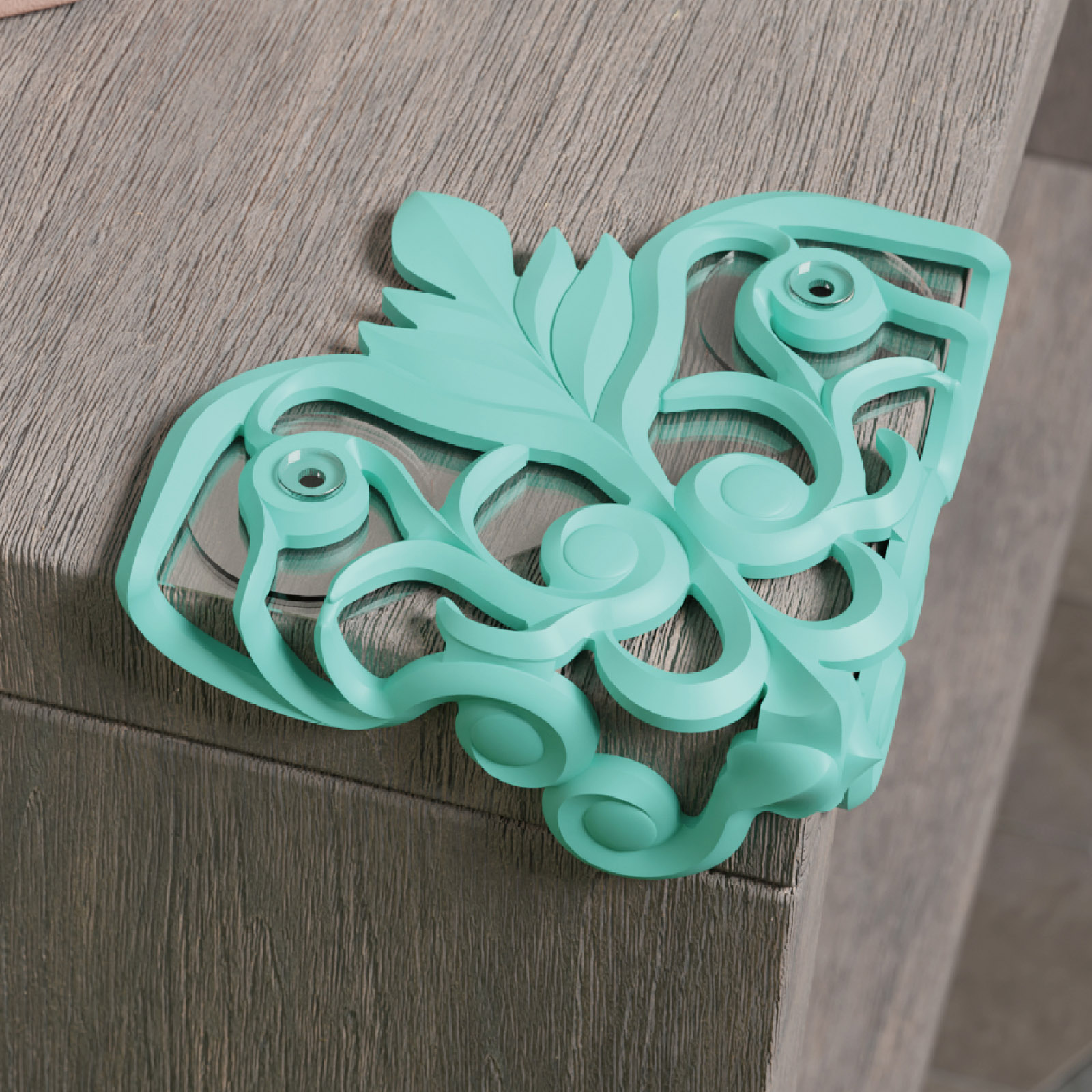 商品描述 | yeduo design渦卷紋護角 薄荷藍:堅硬銳利的桌角,讓渦卷紋優雅流動的曲線,成為溫柔的防護屏障,無論兒童奔跑、長輩行走、寵物探險,都能有效地吸收撞擊,也增添家居空間 |