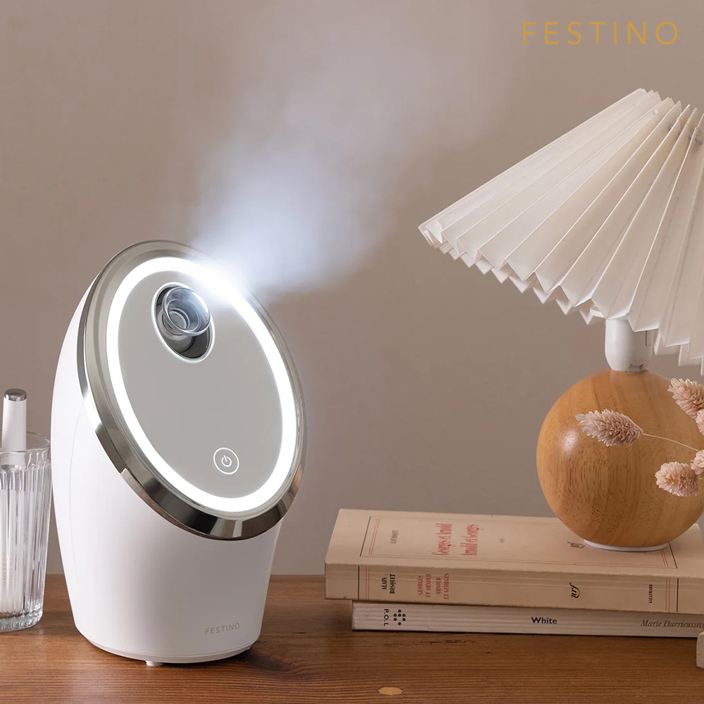 內容簡介 ◆採用奈米級蒸汽,溫度約為45℃,搭配超微粒子水蒸氣(1 1,000,000),透過獨特設計螺旋氣流輕柔地包裹整個臉部,徹底清潔難以去除的彩妝和皮脂。有助於向角質層輸送水分,使皮膚變得濕潤、柔軟、滋潤。◆水潤肌膚,保濕含水量達218%UP!◆深層清潔,卸妝前使用蒸氣,透過用溫熱蒸氣打開毛孔,使彩妝污漬更容易被清除,卸妝過程更加迅速和有效。◆保濕護理,在洗臉後和保養前使用蒸氣,有助於清潔肌膚、去除污垢,同時打開毛孔使乳液和精華液更容易滲透到角質層。◆改善妝容,在化妝前使用蒸氣,滋潤肌膚,使肌膚更光滑,進而提升妝容效果。◆在細膩溫暖的蒸氣中放鬆身心,享受休閒時光,提供了一種綜合的美容和放鬆方式。◆蒸氣3階段角度調整,特別適合用於滋潤乾燥缺乏水分的肩部和頭髮容易散開的區域。◆LED美妝鏡搭載,可隨時檢查肌膚狀況況。◆操作簡單,只需輕觸鏡面上的電源開關即可。◆可拆式抗菌水箱,方便清洗,隨時提供【商品規格】品名 : Festino Nano Steamer奈米潔顏蒸臉器型號 : SMHB-033電源 : 100V 50 60Hz功率 : 265W本體尺寸 : 約W120×D136×H208mm本體重量 : 約605g蒸汽產生量:約6ml分鐘蒸氣溫度:約45℃(距離出風口近25cm)蒸氣產生時間:約15分鐘(自動關閉)蒸汽產生等待時間:約40秒水箱容量:約90ml電源線:約1.8m 材質:機身:ABS,水箱 出水口:PC,鏡子:玻璃設計:日本設計產地:中國製造 保固:公司貨 原廠1年保固 顏色:白包裝內容 : 主機、中文說明書和保固卡本商品已投保新光產險3200萬產品責任險請勿在使用期間或使用後立即清潔產品。使用後,請讓它冷卻至少 10 分鐘。*請大約每月清潔一次。