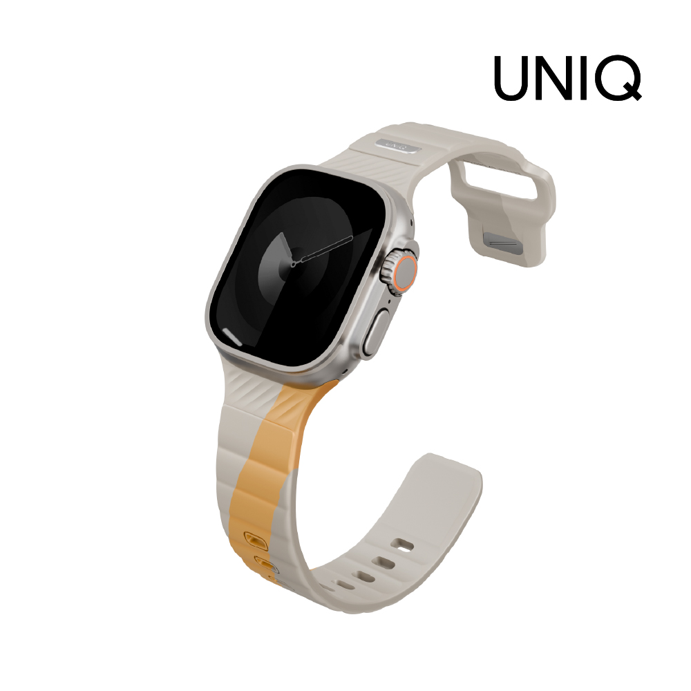 商品名 / | UNIQ 新加坡 Apple watch Stride DE 防水FKM橡膠不鏽鋼高質感錶帶 米黃紋 |