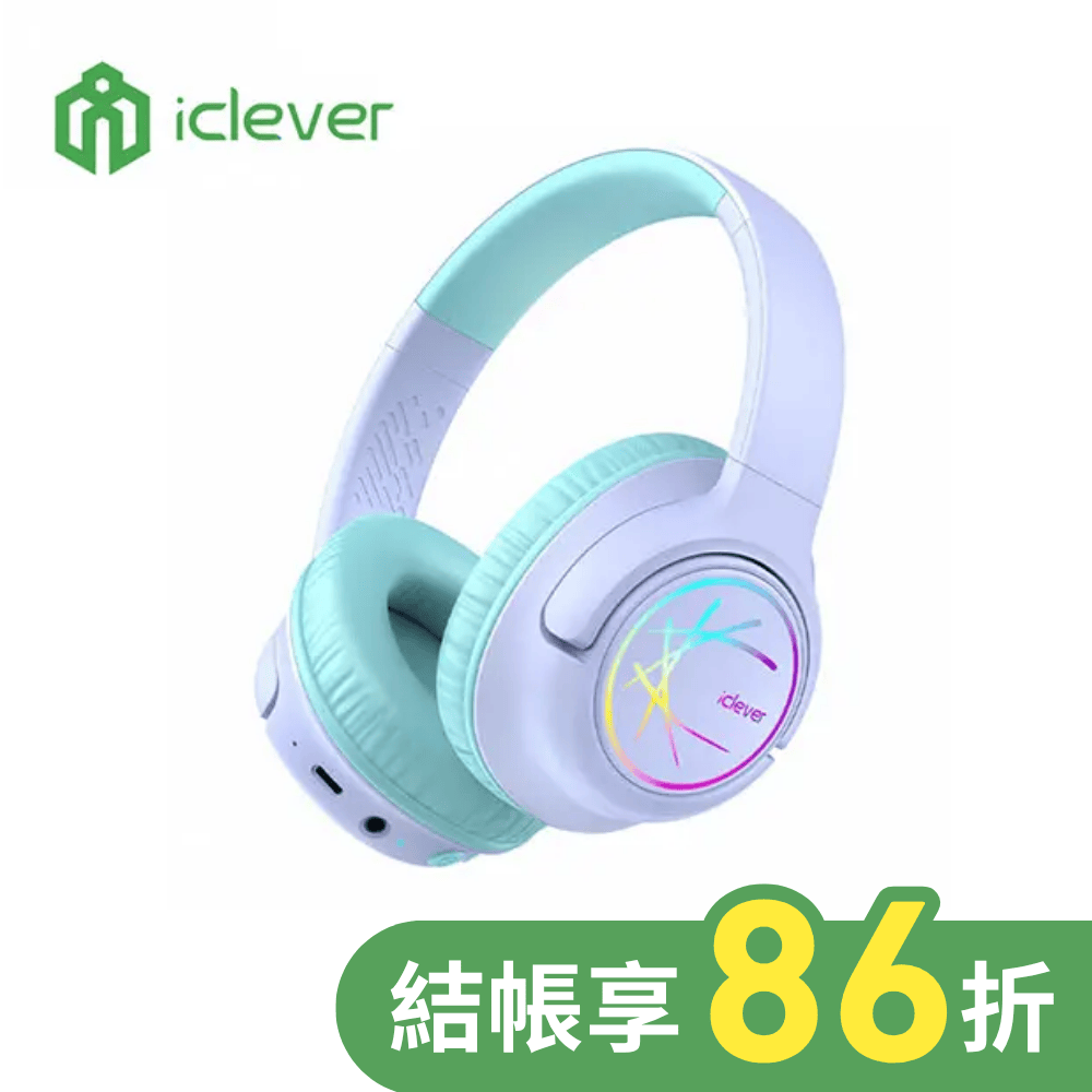 | 商品描述 | iClever BTH18炫光無線兒童耳機 紫:產品特色彩色LED燈與多段式聽力保護LED燈光|俏皮線條設計,炫麗燈光效果音量限制|可調三種74/85分貝音量限制安全無毒|符合國際BPA-f |