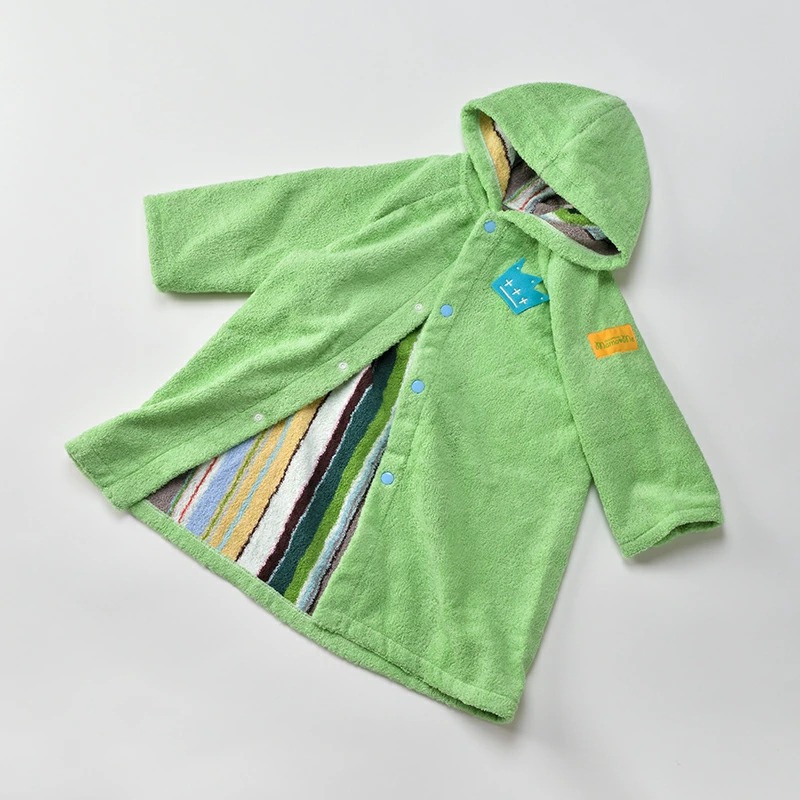 | 簡介 / | mama&me 多彩條紋兒童連帽浴袍 綠色 S:伊織,來自愛媛的珍貴獻禮!今治市,位於四國愛媛縣(古名為伊予國)的一座純樸小城,此地的毛巾工坊事業擁有久遠的歷史,經過百年仍 |