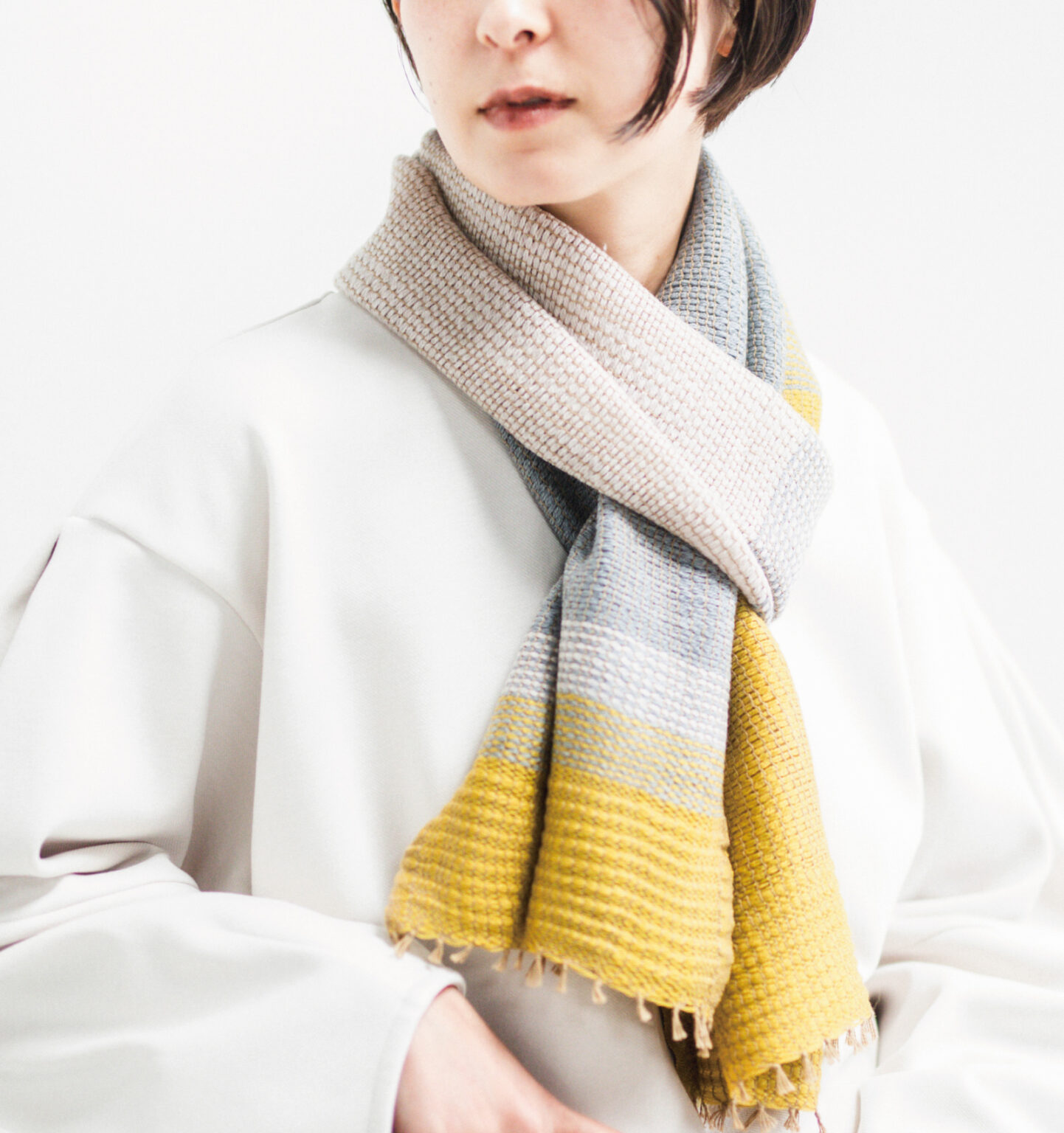 商品名 / | 工房織座羊毛混紡逸波紋圍巾 黃色 |