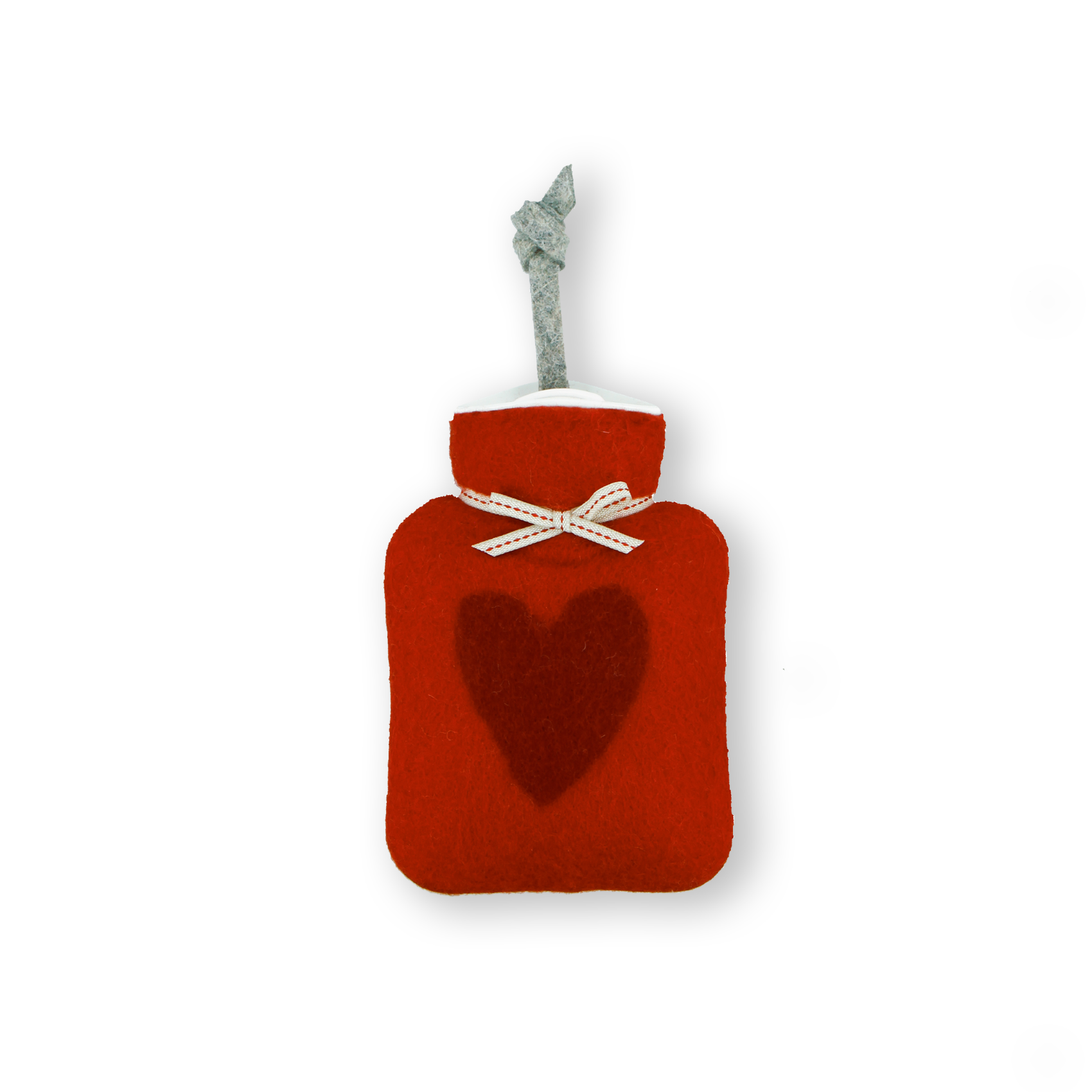 德國 dorothee lehnen 手工羊毛氈熱水袋 方型 深紅愛心 大紅底