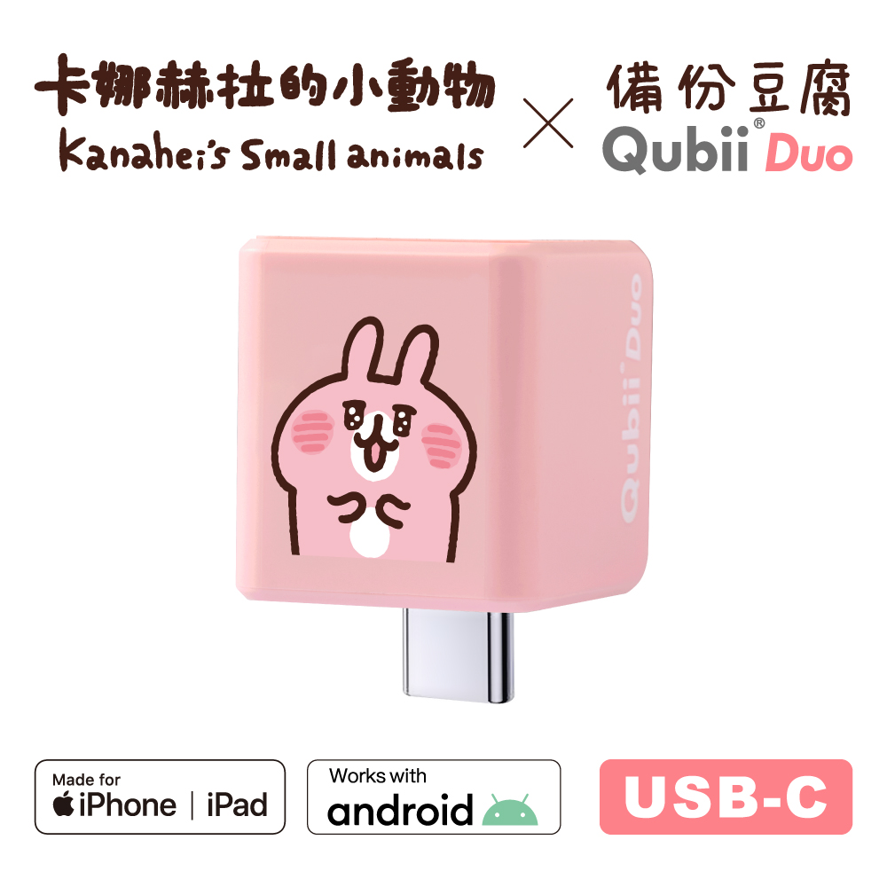 | 簡介 / | Maktar QubiiDuo USB-C備份豆腐卡娜赫拉的小動物 亮眼兔兔 粉色:備份豆腐是一款透過充電器隨插即用的手機備份設備,能在充電時自動備份照片、影片及聯絡人等資料至其內建 |