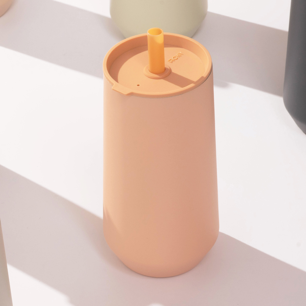 WOKY沃廚輕芯鈦瓷易潔層吸管保溫杯 600ml 夕映橘