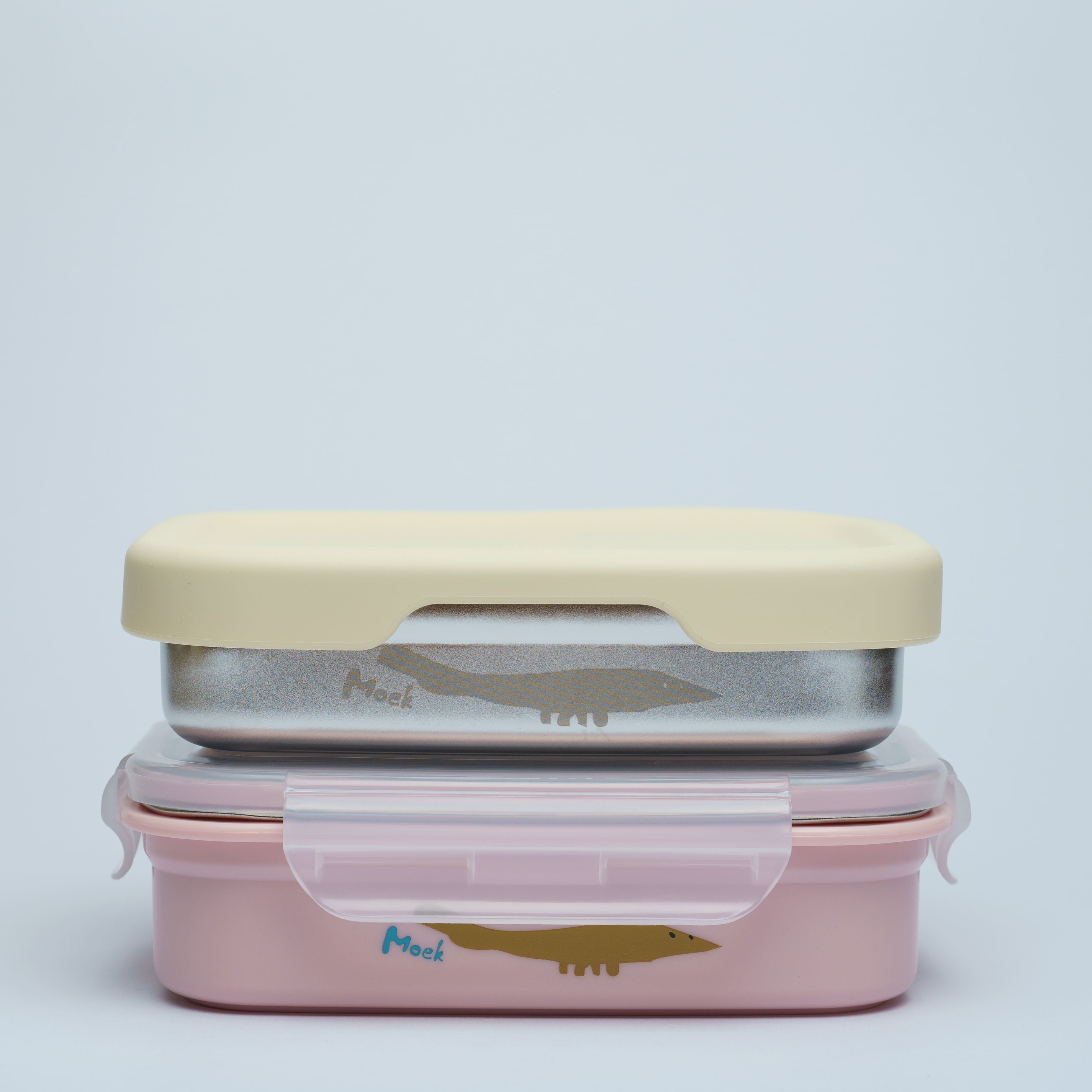 Jesper雙層抗菌可微波餐盒組 含矽膠上蓋 粉