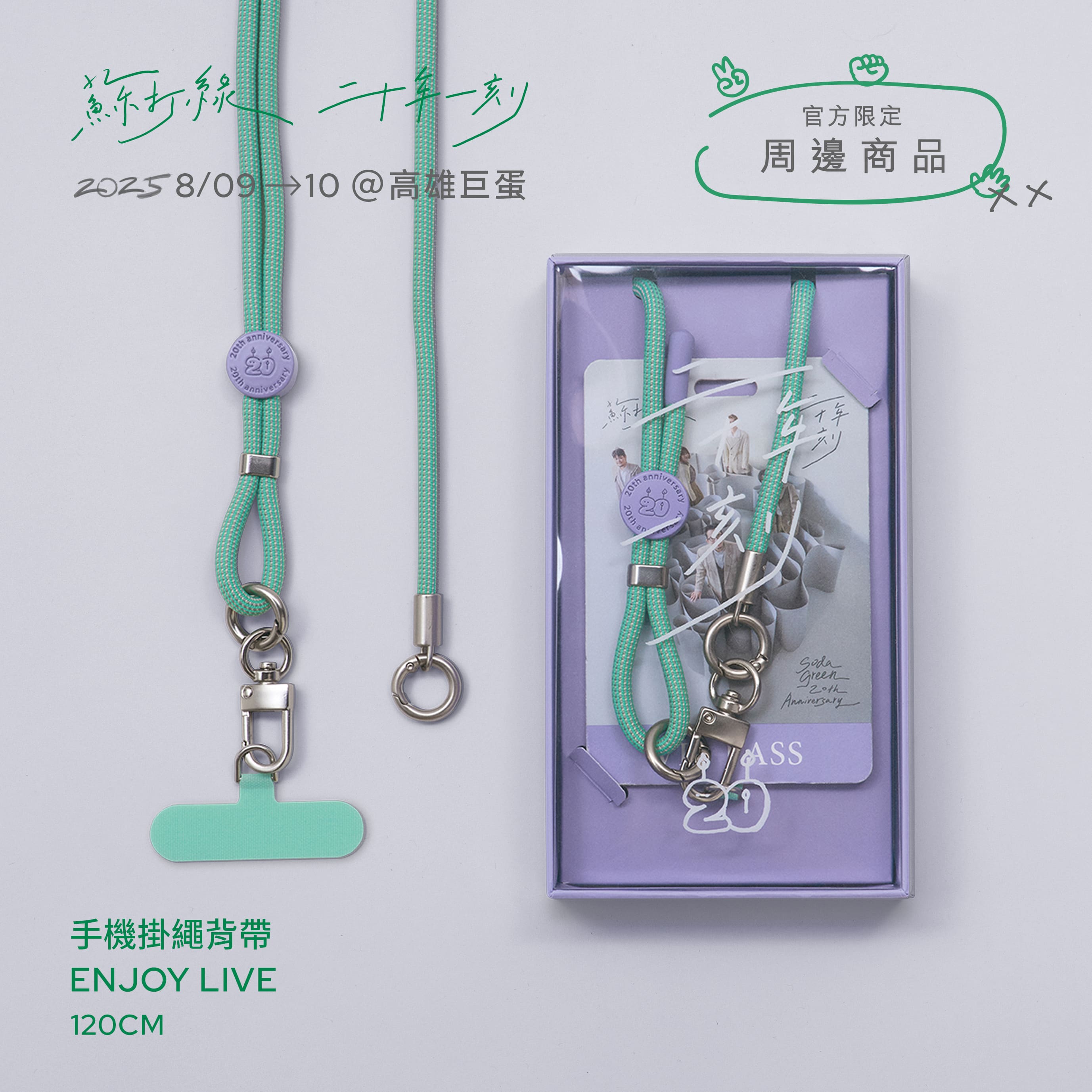 簡介 / | 手機掛繩背帶 Enjoy Live:8 914:00-8 1123:59三款新品開放預購,一人每品項限預購一個。蘇打綠二十年一刻第二十站高雄巨蛋官方限定周邊商品手機掛繩:『EnjoyLive』RopeC |