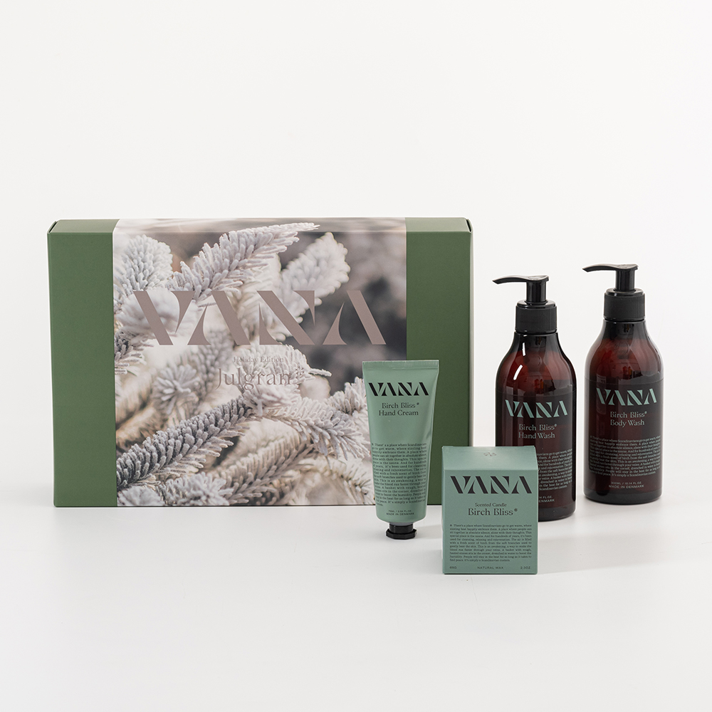 內容簡介 ★天然低敏溫和★各種膚質適用★交換禮物送禮首選VANA致力於推出多款聖誕禮品,期望能傳遞滿滿的佳節氣氛。點燃北歐特調森林系香氛,彷彿置身於北歐瑞典的家庭裡,一起度過充滿冬日的溫暖與歡樂。 內容物:樺樹禮讚香氛蠟燭65g *1樺樹禮讚沐浴露300ml *1樺樹禮讚洗手露300ml *1樺樹禮讚護手霜75ml *1 ◆ Birch Bliss 樺樹禮讚-柑橘森林調65g以明亮的佛手柑、柑橘作為前調,舒緩放鬆有如撲面而來的桑拿蒸氣,結合綠薄荷與雪松的中調,為這支蠟燭香氣帶來清新氣息,彷彿親身漫步北歐古老森林,清醒而弛放,尾調則調和奢侈的茉莉與麝香,讓濃郁的甜美,陪伴自己重新回到享受寧靜的時刻。 香氛筆記前調: 佛手柑、柑橘、無花果中調: 雪松、綠薄荷、大黃基調: 麝香、茉莉 蠟燭規格容器尺寸 直徑5.8cm 高6.6cm容量 65g (約可燃燒16小時)瑞典製造 ◆ 樺樹禮讚沐浴露 300ml 丹麥製白樺樹萃取擁有抗氧化和肌膚鎮靜效果,金縷梅可加強收斂並調理油性肌膚。 ◆ 樺樹禮讚洗手露 300ml 丹麥製白樺樹萃取擁有抗氧化和肌膚鎮靜效果,金縷梅可加強收斂並調理油性肌膚。 ◆ 樺樹禮讚護手霜 75ml 丹麥製白樺樹萃取擁有抗氧化和肌膚鎮靜效果,金縷梅可加強收斂並調理油性肌膚,油菜籽油、乳木果油為雙手肌膚帶來透亮及柔潤功效。