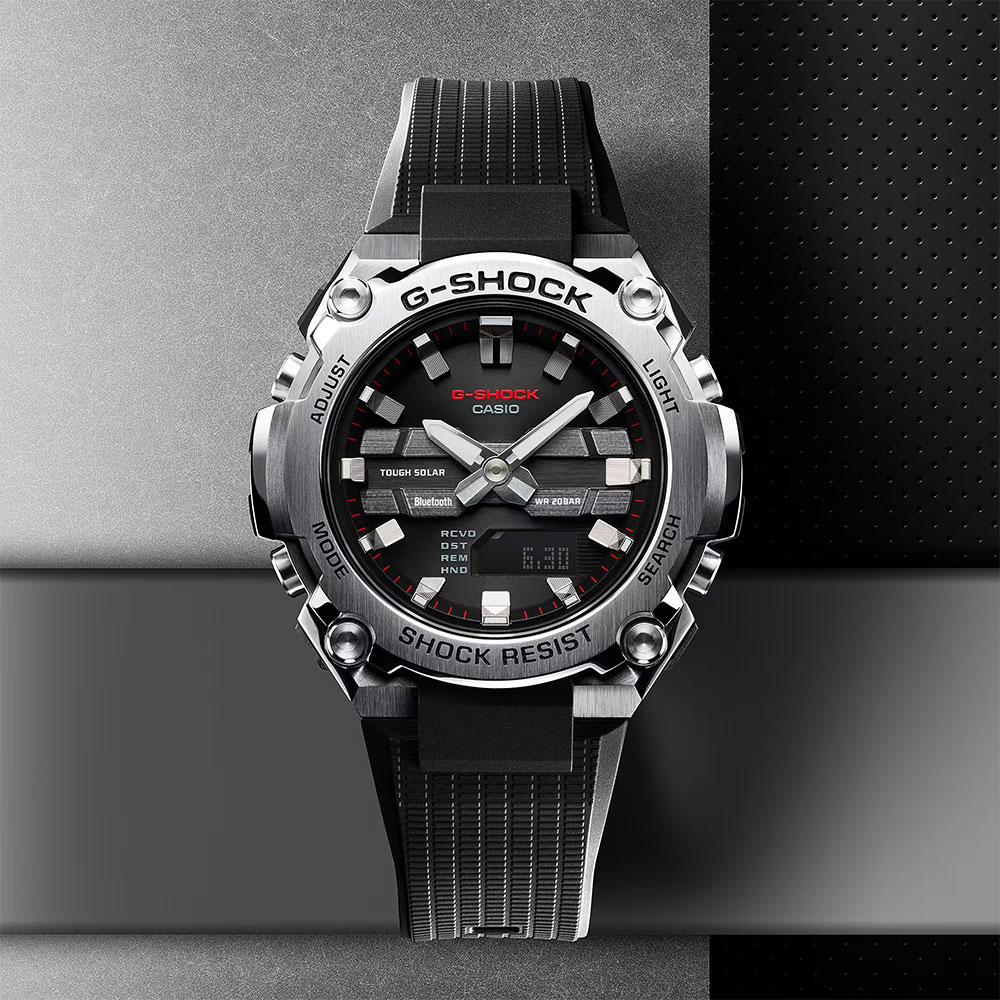 內容簡介 隆重推出GST-B600,一款更輕巧的G-SHOCK手錶,也是結合金屬和樹脂的G-STEEL系列至今最纖薄的款式。 透過結合金屬和樹脂零件,GST-B600的厚度為超纖薄的11.3mm,搭配直徑僅有42mm的熱門小型錶殼,並成功維持G-STEEL系列著名的雙層金屬錶圈構造。錶殼尺寸(長× 寬× 高)41.4 × 42.3 × 11.4 mm重量60 g錶殼與錶圈材質樹脂 不鏽鋼錶帶材質樹脂錶帶構造耐衝擊防水能力200 公尺防水電池與電池壽命Tough Solar(太陽能)智慧型手機連結功能Mobile Link(使用 Bluetooth☆ 無線連接)應用程式CASIO WATCHES應用程式連線功能自動時間調整簡易的手錶設定約 300 個城市的世界時間時間與地點提醒事項尋找手機功能NCC型式認證號碼CCAJ20LP2DF1T8玻璃材質礦物玻璃相容的錶帶尺寸140 至 205 mm其他夜光世界時間世界時間38 個時區(38 個城市 + 國際標準時間)、自動夏令時間(DST)切換、居住城市 世界時間城市對調碼錶1 秒秒錶測量範圍:59'59測量單位:1 秒測量功能:經過時間、圈速、中途時間計時器倒數定時器測量單位:1 秒倒數範圍:60 分鐘倒數開始時間設定範圍:1 秒至 60 分鐘(增加以 1 秒及 1 分鐘為單位)鬧鈴 整點報時5 個每日鬧鈴整點報時照明雙 LED 燈錶面 LED 燈(超亮照明、選擇性照明持續時間(1.5 秒或 3 秒)、殘照機能)數位畫面 LED 背光(超亮照明、選擇性照明持續時間(1.5 秒或 3 秒)、殘照機能)燈光顏色LED:白色行事曆全自動日曆(至 2099 年)靜音功能按鈕操作音開 關節電功能節電功能(當手錶放置在黑暗中,顯示畫面會變為空白,以節省電力)電量顯示 警示低電量警示電量維持時間約略電池運作時間:使用可充電電池為 7 個月(以電池充電後沒有暴露在光線下正常使用的運作時間計算)使用可充電電池為 18 個月(以電池充滿電之後放置在完全黑暗的環境中並開啟「節電功能」的運作時間計算)精準度準確度:每個月 ±15 秒(沒有 Mobile Link 功能)其他商品特色12 24 小時格式星期顯示(可選擇以六種語言顯示星期)指針移動功能 (指針可移動,讓您清楚看見數位顯示畫面上的內容。)一般計時:指針:2 根指針(時、分(指針每 20 秒移動一次))數位:時、分、秒、下午、月份、日期、星期日期 月份顯示互換◆鑑賞期注意事項:依照消費者保護法規定,線上購物消費者均享有商品到貨十天猶豫期之權益(並非試用期喔)。商品必須是全新狀態(不得有刮傷或拆封試戴),以及附上廠商原付所有附隨文件或資料之完整性(出貨時均有錄影詳列品項),才能享有這項服務喔。如有隨貨附贈品,經拆封使用恕無法辦理退貨。網頁圖片因拍攝關係會與實際商品略有色差,圖片僅供參考,顏色請以實際收到之商品為準。◆售後服務事項:商品於保固期內有故障或需做售後服務維修時(外觀不在保固內),依各品牌商之規定,以維修方式處理,一律需提供原廠保證書由原供應商送回品牌商做售後服務處理追蹤。 超出保固服務範圍或期限者,其維修,收費事宜,依原廠售後服務中心為基準 售後服務中心為基準。