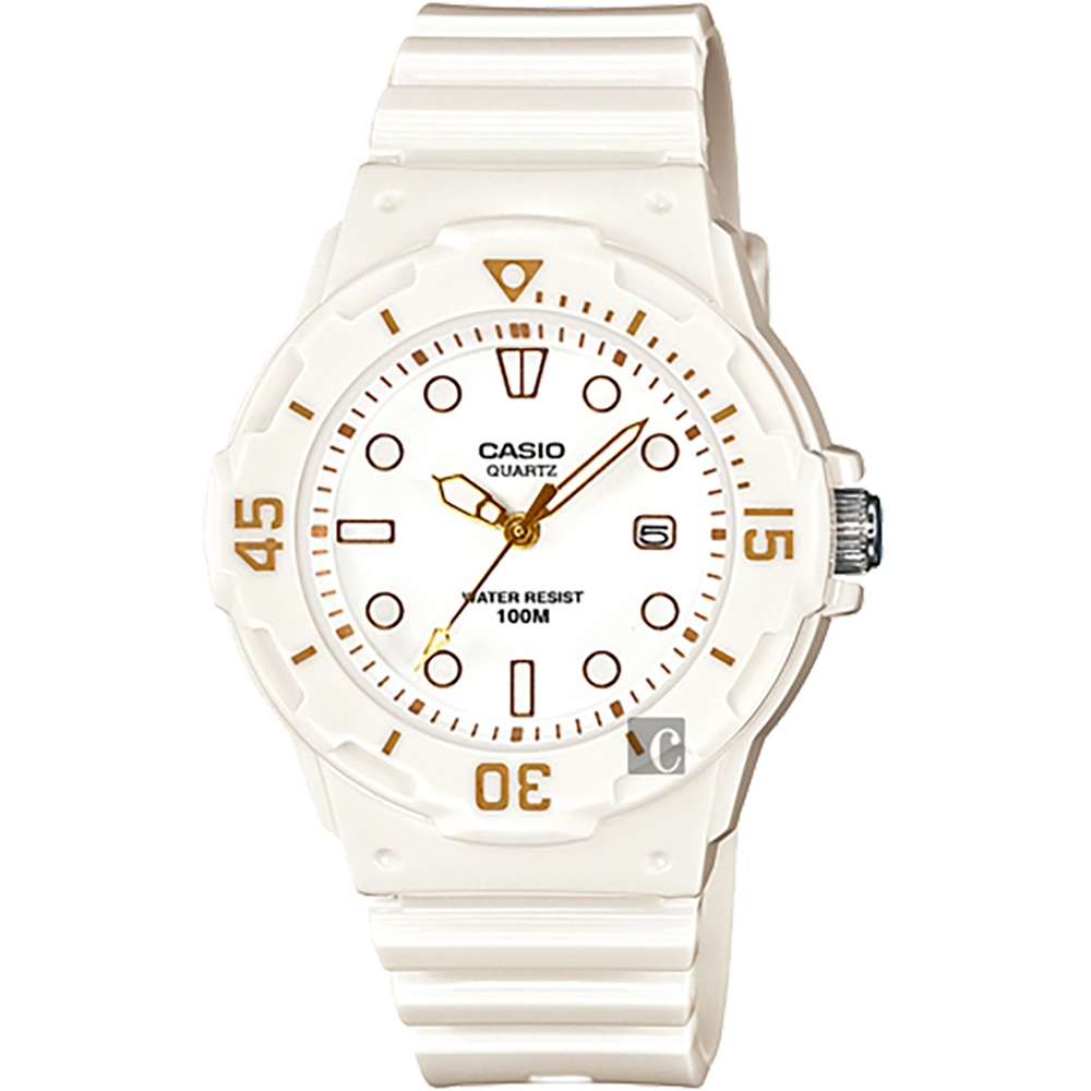 內容簡介 ANALOG-LADY'S 指針女錶系列!百米防水,可旋轉錶圈,日期顯示時、分、秒指針顯示,簡約率性外觀設計以潛水風格為概念的女性運動風錶款,錶圈可旋轉以計時,防水達100米且具有獨立日期顯示窗,打造出迷你小巧的運動風'錶款。[詳細規格簡介]※基本資料※料號:LRW-200H-7E2VDF機芯:石英錶 動力:電池※規格※錶殼:直徑約38.9 X 34.2mm 鏡面:直徑約22mm錶帶:寬約17mm,長約18cm厚度:約11.5mm 重量:約25g※顏色※錶盤:白色系 錶帶:白色系指針:金色系 刻度:金色系※材質※錶殼:樹脂 錶帶:樹脂鏡面:樹脂玻璃※其他規格※錶扣:一般穿式(ㄇ型) 防水:日常生活防水100米可旋轉錶圈日期顯示時間模式:指針:時、分、秒精確度:每月±20秒內電池壽命估計值:3年(使用SR626SW)配件:原廠包裝,原廠保證書,保固1年。 ◆鑑賞期注意事項:依照消費者保護法規定,線上購物消費者均享有商品到貨十天猶豫期之權益(並非試用期喔)。商品必須是全新狀態(不得有刮傷或拆封試戴),以及附上廠商原付所有附隨文件或資料之完整性(出貨時均有錄影詳列品項),才能享有這項服務喔。如有隨貨附贈品,經拆封使用恕無法辦理退貨。網頁圖片因拍攝關係會與實際商品略有色差,圖片僅供參考,顏色請以實際收到之商品為準。◆售後服務事項:商品於保固期內有故障或需做售後服務維修時(外觀不在保固內),依各品牌商之規定,以維修方式處理,一律需提供原廠保證書由原供應商送回品牌商做售後服務處理追蹤。 超出保固服務範圍或期限者,其維修,收費事宜,依原廠售後服務中心為基準 售後服務中心為基準。