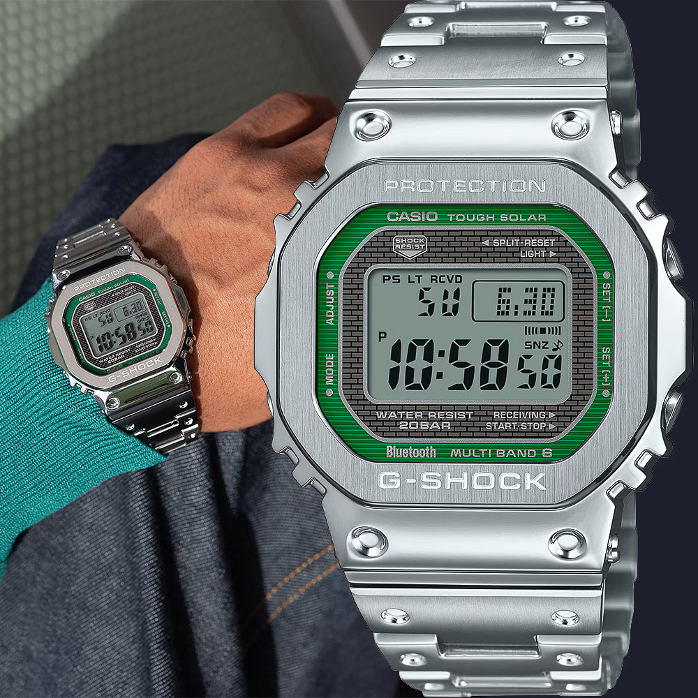 內容簡介 隆重介紹 GMW-B5000 全金屬錶款系列,在忠於首款 G-SHOCK 設計理念的同時,提供最先進的功能GMW-B5000-3 在承襲經典的同時,運用清新的綠色輪廓與銀色光芒展現自在又精緻的全金屬 G-SHOCK 設計,讓傳統發揚光大不鏽鋼金屬錶圈與錶殼間加入高級樹脂緩震零件,為全金屬手錶打造優異的耐衝擊結構高密度安裝技術,讓此錶款與其他 GMW-B5000 設計同樣地纖薄精巧堅固的旋入式背蓋搭配 DLC 塗層,耐磨性更加倍。韌窩處理的金屬錶帶,重現首款 G-SHOCK 樹脂錶帶的經典設計,纖薄太陽能板與 STN-LCD 數位顯示,造就優異的可見度,讀取更輕鬆此款創新的錶款,同樣提供全方位功能。下載專屬應用程式,透過 Bluetooth® 藍牙與您的智慧型手機進行配對此錶款搭載可自動精準計時的 Multiband 6 世界六局電波、確保各功能穩定運作的 Tough Solar 太陽能充電系統、高亮度全自動 LED 背光、世界時間、可選擇以六種語言顯示的星期數等多項特點,讓您隨時發揮最佳表現錶殼 錶圈 錶帶材質:不鏽鋼不鏽鋼錶帶堅固錶帶單觸 3 摺疊錶扣防震礦物玻璃旋入式背蓋耐衝擊構造防水200米太陽能電力全自動超亮LED照明(可選擇照明時間2秒或4秒 餘暉設計)電波接收功能自動訊號接收(每天最多6次,接收成功後即不再接收;接收中國地區的訊號,每天接收5次)(中國)接收電波:BPC、頻率:68.5kHz(中國河南省商丘市)(日本)接收電波:JJY、頻率:40kHz(福島) 60kHz(福岡 佐賀)(北美地區)接收電波:WWVB、頻率:60kHz(歐洲地區)接收電波:MSF DCF77、頻率:60kHz(英格蘭,安索恩) 77.5kHz(德國,曼佛林根)*當本地時間設定為能接收到訊號的城市時,接收適合該城市發射台的電波。時差根據選擇的城市自動設定。手機藍牙連線功能NCC型式認證號碼:CCAB23LP0250T7世界時間5 世界時間39個時區(39個城市+世界協調時間)、日光節約時間(開 關)、本地時間 世界時間切換、自動夏令時間(DST)切換碼錶測量上限:00'00"00~59'59"99(前60分鐘)1:00'00~23:59'59(60分鐘後)測量單位:1 100秒(前60分鐘)1秒(60分鐘後)測量模式:經過時間、中途時間、第一名與第二名時間差倒數計時測量單位:1秒測量範圍:1分~24小時(增加單位:1分鐘或1小時)五組獨立鬧鈴(一組貪睡鬧鈴)低電量警示節電功能(當進入黑暗狀態,手錶會自動關閉螢幕顯示)全自動日曆(至2099年)12 24小時制切換操作音(開啟 關閉)日期顯示(星期 月份顯示切換)星期顯示(可以六種語言顯示)時間模式:小時、分、秒、pm、月、日期、星期精準度:每月±15秒(不進行手機藍牙連線功能時)電池壽命估計值在太陽能電池不發電的情況下,充滿電後可連續運作時間:各功能正常動作時:約10個月節電狀態下:約22個月相容的錶帶尺寸:150 至 205 mm尺寸:49.3 × 43.2 × 13 mm重量:167g保固期:1年◆鑑賞期注意事項:依照消費者保護法規定,線上購物消費者均享有商品到貨十天猶豫期之權益(並非試用期喔)。商品必須是全新狀態(不得有刮傷或拆封試戴),以及附上廠商原付所有附隨文件或資料之完整性(出貨時均有錄影詳列品項),才能享有這項服務喔。如有隨貨附贈品,經拆封使用恕無法辦理退貨。網頁圖片因拍攝關係會與實際商品略有色差,圖片僅供參考,顏色請以實際收到之商品為準。◆售後服務事項:商品於保固期內有故障或需做售後服務維修時(外觀不在保固內),依各品牌商之規定,以維修方式處理,一律需提供原廠保證書由原供應商送回品牌商做售後服務處理追蹤。 超出保固服務範圍或期限者,其維修,收費事宜,依原廠售後服務中心為基準 售後服務中心為基準。