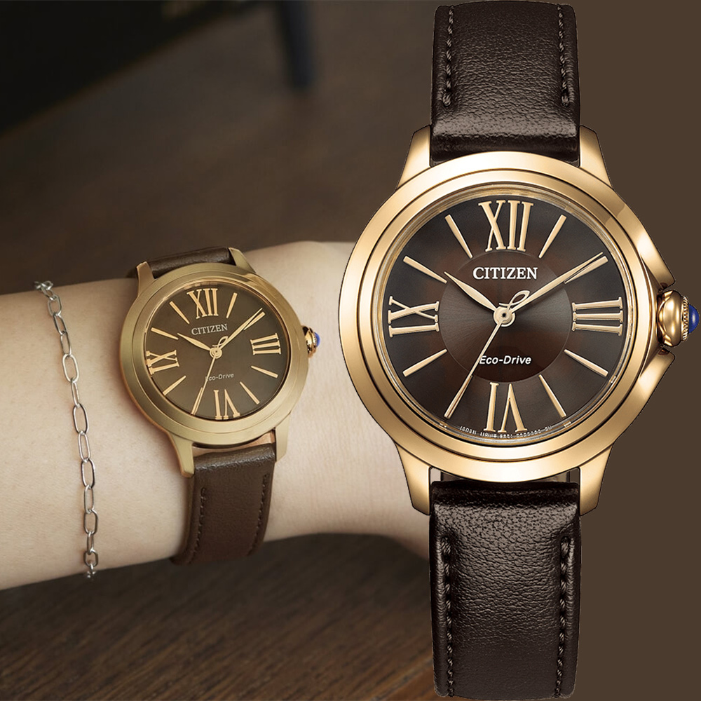 內容簡介 Eco-Drive 環保光動能 L系列,時、分、秒大三針羅馬數字時標,雙球面藍寶石水晶玻璃時尚色系,環保材質錶帶CITIZEN L的品牌概念「純粹之美」,美麗不是因外在的華麗裝飾而是由內在心靈的美散發至外貌的,女性腕錶也應如此,內斂而富含知性環保光動能,充滿電後可連續運作6個月圓潤的錶殼外型,雙圈錶圈設計如同花苞造型的錶冠,展現花朵綻放的模樣及活力寬大羅馬時標以細體呈現對比感,柳葉型的指針同樣以纖細造型呈現雙球面藍寶石玻璃鏡面,搭配環保蘋果皮材質錶帶※基本資料※料號:EM1163-09X機芯:石英錶 動力:光動能※規格※錶殼:直徑約30.3mm錶帶:寬約14mm,長約18cm厚度:約8.7mm 重量:約36g※顏色※錶盤:咖啡色系 錶帶:咖啡色系錶框:金色系※材質※錶殼:不鏽鋼 錶帶:環保材質錶帶(蘋果皮)鏡面:藍寶石水晶鏡面※其他規格※錶扣:一般穿式 (ㄇ型) 防水:50米配件:原廠精緻錶盒,原廠保證書,保固期2年。鑑賞期注意事項:依照消費者保護法規定,線上購物消費者均享有商品到貨猶豫期之權益(並非試用期喔),商品必須是全新狀態(不得有刮傷或拆封試戴),以及附上廠商原付所有隨附文件或資料,維持完整性(出貨時均有錄影詳列品項),才能享有這項服務喔。售後服務事項:商品於保固期內需做售後服務維修時(外觀不在保固內),依各品牌商之規定,以維修方式處理,一律需提供原廠保證書由原供應商送回品牌商做售後服務處理追蹤。 超出保固服務範圍或期限者,其維修,收費事宜,依原廠售後服務中心為基準。