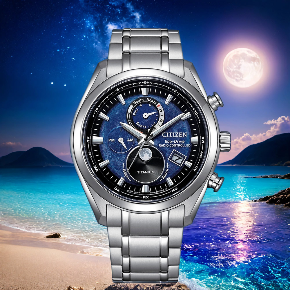 內容簡介 電波時計,Eco-Drive 環保光動能五局電波接收、定時自動收訊功能超級鈦金屬錶殼錶帶,萬年曆月相自動計算 南北半球月相切換功能Eco-Drive 光動能是CITIZEN高科技的代表作引以為傲的製錶技術,更是都會時尚的首選之一運用任何光源推動腕錶運行,毋須更換電池要在繁忙都會生活中不停前進,光動能電波時計絕對是不可或缺的夥伴,不須手動調整時間、日期的萬年曆功能,及定時收訊校正,掌握生活。運動風大錶徑錶殼,錶盤呈現月球紋理及陰影潔淨感月相盈虧顯示,鈦金屬錶殼錶帶鏡面裝飾與錶盤月球相映從地區電波信號塔所接收的日期信息轉成萬年曆去計算每天月相並會自動顯示當前的月相在錶盤上超級鈦金屬 Duratect (錶身特別塗層,減低刮花機會)月相自動計算功能 南北半球月相切換功能光動能 (以任何光源充電,毋須定期更換電池)電池能量不足指示功能,防止過度充電功能五局電波接收(美國,歐洲,日本-東西,中國)24個時區世界時間,夏令時間設定 (ON OFF)萬年曆,電量儲存顯示,24小時、日期及星期顯示※基本資料※料號:BY1010-81L機芯:石英錶 動力:光動能※規格※錶殼:直徑約41.5mm錶帶:長約19cm厚度:約10.8mm 重量:約103g※顏色※錶盤:黑色系,藍色系 錶帶:銀色系錶框:銀色系※材質※錶殼:鈦金屬 錶帶:鈦金屬鏡面:藍寶石水晶鏡面※其他規格※錶扣:按壓式摺疊錶扣 防水:100米配件:原廠精緻錶盒,原廠保證書,原廠保固期2年調整錶帶:可幫您調整手圍長度,請您先依個人習慣以皮尺測量後看幾公分 (但皮帶以及橡膠錶帶材質不建議您事先調整錶帶),於收件地址欄或備註欄後方加註需裁剪之手圍長度。鑑賞期注意事項:依照消費者保護法規定,線上購物消費者均享有商品到貨猶豫期之權益(並非試用期喔),商品必須是全新狀態(不得有刮傷或拆封試戴),並附上所有廠商原隨附文件資料保持完整性(出貨時均有錄影詳列品項),才能享有退換貨服務喔。售後服務事項:商品於保固期內需做售後服務維修時,依各品牌商之規定以維修方式處理,一律需提供原廠保證書由原供應商送回品牌商做售後服務處理追蹤。超出保固服務範圍或期限者,其維修收費事宜,依原廠售後服務中心為基準。