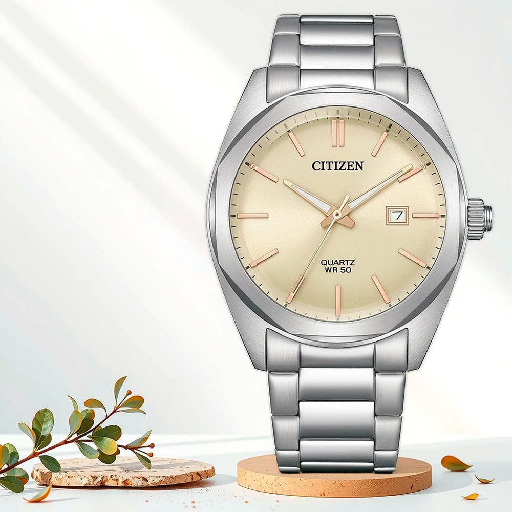 內容簡介 原廠公司貨,日系經典台灣限量100只,現代簡約風格時、分、秒大三針,日期視窗日系經典結合現代極簡風格三針日期紳士錶款是尊貴品味的最佳象徵不鏽鋼錶殼與錶帶材質,強化玻璃鏡面具備都會實用的日期顯示視窗,無論正式或休閒適合於各場合配戴簡約而精緻的設計中蘊含著豐富的內涵在繁忙的生活中永遠不會忘記重要的時刻,以高雅與自信的姿態翩然於每一刻品牌引以為傲的製錶技術,更是時尚配件的首選之一,展現個人獨特風采!※基本資料※料號:BI5110-54B機芯:石英錶 動力:電池※規格※錶殼:直徑約41mm錶帶:約19cm 重量:約131g※顏色※錶盤:金色系 錶帶:銀色系 錶框:銀色系※材質※錶殼:不鏽鋼 錶帶:不鏽鋼鏡面:強化玻璃※其他規格※ 錶扣:按壓式摺疊錶扣 防水:50米配件:原廠精緻錶盒,原廠保證書,保固2年。◆調整錶帶可幫您代為調整手圍長度,請您先依個人習慣以皮尺測量後看幾公分,若商品需要調整錶帶長度(但皮帶以及橡膠錶帶材質不建議您事先調整錶帶),請於收件地址欄或備註欄後方加註需裁剪之手圍長度。◆鑑賞期注意事項:依照消費者保護法規定,線上購物消費者均享有商品到貨十天猶豫期之權益(並非試用期喔)。商品必須是全新狀態(不得有刮傷或拆封試戴),以及附上廠商原付所有附隨文件或資料之完整性(出貨時均有錄影詳列品項),才能享有這項服務喔。如有隨貨附贈品,經拆封使用恕無法辦理退貨。網頁圖片因拍攝關係會與實際商品略有色差,圖片僅供參考,顏色請以實際收到之商品為準。◆售後服務事項:商品於保固期內有故障或需做售後服務維修時(外觀不在保固內),依各品牌商之規定,以維修方式處理,一律需提供原廠保證書由原供應商送回品牌商做售後服務處理追蹤。 超出保固服務範圍或期限者,其維修,收費事宜,依原廠售後服務中心為基準 售後服務中心為基準。