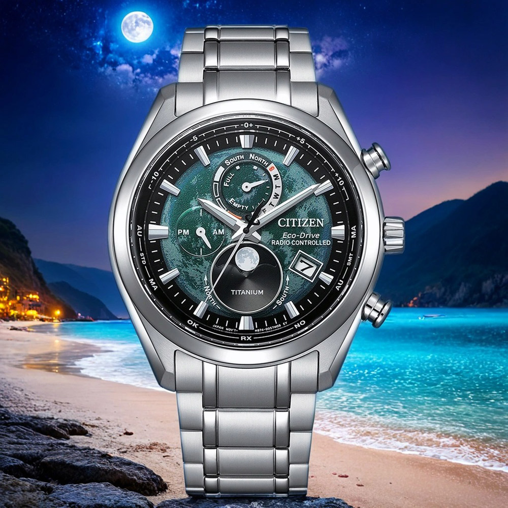 內容簡介 電波時計,Eco-Drive 環保光動能五局電波接收、定時自動收訊功能超級鈦金屬錶殼錶帶,萬年曆月相自動計算 南北半球月相切換功能Eco-Drive 光動能是CITIZEN高科技的代表作引以為傲的製錶技術,更是都會時尚的首選之一運用任何光源推動腕錶運行,毋須更換電池要在繁忙都會生活中不停前進,光動能電波時計絕對是不可或缺的夥伴,不須手動調整時間、日期的萬年曆功能,及定時收訊校正,掌握生活。運動風大錶徑錶殼,錶盤呈現月球紋理及陰影潔淨感月相盈虧顯示,鈦金屬錶殼錶帶鏡面裝飾與錶盤月球相映從地區電波信號塔所接收的日期信息轉成萬年曆去計算每天月相並會自動顯示當前的月相在錶盤上超級鈦金屬 Duratect (錶身特別塗層,減低刮花機會)月相自動計算功能 南北半球月相切換功能光動能 (以任何光源充電,毋須定期更換電池)電池能量不足指示功能,防止過度充電功能五局電波接收(美國,歐洲,日本-東西,中國)24個時區世界時間,夏令時間設定 (ON OFF)萬年曆,電量儲存顯示,24小時、日期及星期顯示※基本資料※料號:BY1010-81X機芯:石英錶 動力:光動能※規格※錶殼:直徑約41.5mm錶帶:長約19cm厚度:約10.8mm 重量:約103g※顏色※錶盤:黑色系,綠色系 錶帶:銀色系錶框:銀色系※材質※錶殼:鈦金屬 錶帶:鈦金屬鏡面:藍寶石水晶鏡面※其他規格※錶扣:按壓式摺疊錶扣 防水:100米配件:原廠精緻錶盒,原廠保證書,原廠保固期2年調整錶帶:可幫您調整手圍長度,請您先依個人習慣以皮尺測量後看幾公分 (但皮帶以及橡膠錶帶材質不建議您事先調整錶帶),於收件地址欄或備註欄後方加註需裁剪之手圍長度。鑑賞期注意事項:依照消費者保護法規定,線上購物消費者均享有商品到貨猶豫期之權益(並非試用期喔),商品必須是全新狀態(不得有刮傷或拆封試戴),並附上所有廠商原隨附文件資料保持完整性(出貨時均有錄影詳列品項),才能享有退換貨服務喔。售後服務事項:商品於保固期內需做售後服務維修時,依各品牌商之規定以維修方式處理,一律需提供原廠保證書由原供應商送回品牌商做售後服務處理追蹤。超出保固服務範圍或期限者,其維修收費事宜,依原廠售後服務中心為基準。