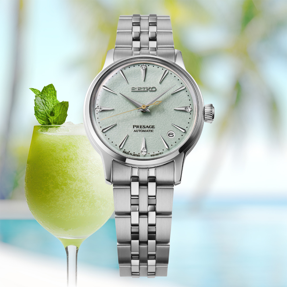 內容簡介 Presage Cocktail Time 調酒師系列STAR BAR 春夏限定調酒聯名腕錶自動上鍊機芯,四顆鑽石時標鑲嵌Seiko Presage Cocktail Time 系列以東京銀座Star Bar的調酒文化為靈感,呈現精緻優雅的日本美學以清新爽口的「Frozen Mojito」雞尾酒為創意來源——萃取白蘭姆、青檸與薄荷的冰涼氣息轉化為這只令人一見傾心的薄荷綠碎冰錶盤設計34mm精緻錶徑搭配4顆鑽石時標,與拋光不鏽鋼鍊帶相映成趣,為春夏造型增添一抹沁涼綠意搭載Seiko自製 4R35自動機芯,擁有 41 小時動力儲存與秒針停秒功能,並透過透明背蓋展現機械美感此錶融合雞尾酒的藝術與日式極簡工藝,無論日常佩戴還是輕奢聚會,皆散發不凡氣質※基本資料※料號:4R35-06S0G(SRPL63J1)機芯:機械錶 動力:自動上鍊※規格※錶殼:直徑約34mm錶帶:寬約17mm,長約18cm厚度:約10.7mm※顏色※錶盤:綠色系 錶帶: 銀色系錶框:銀色系※材質※錶殼:不鏽鋼 錶帶:不鏽鋼鏡面:強化玻璃※其他規格※錶扣:蝴蝶釦 防水:50米功能:日期顯示配件:原廠精緻錶盒,原廠保證書,原廠保固期3年。調整錶帶:可幫您調整手圍長度,請您先依個人習慣以皮尺測量後看幾公分 (但皮帶以及橡膠錶帶材質不建議您事先調整錶帶),於收件地址欄或備註欄後方加註需裁剪之手圍長度。鑑賞期注意事項:依照消費者保護法規定,線上購物消費者均享有商品到貨猶豫期之權益(並非試用期喔),商品必須是全新狀態(不得有刮傷或拆封試戴),以及附上廠商原付所有隨附文件或資料,維持完整性(出貨時均有錄影詳列品項),才能享有這項服務喔。售後服務事項:商品於保固期內需做售後服務維修時(外觀不在保固內),依各品牌商之規定,以維修方式處理,一律需提供原廠保證書由原供應商送回品牌商做售後服務處理追蹤。 超出保固服務範圍或期限者,其維修,收費事宜,依原廠售後服務中心為基準。