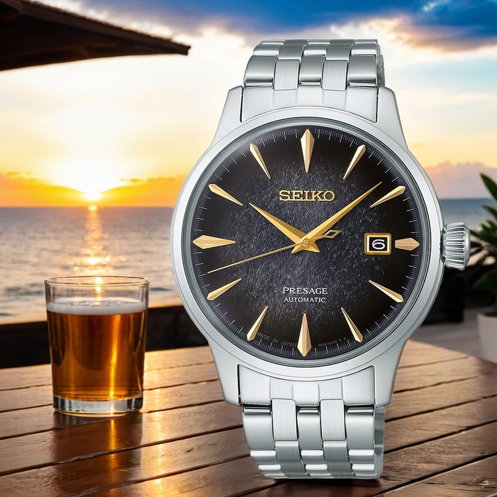內容簡介 Presage Cocktail 調酒師系列STAR BAR 聯名限量版腕錶自動上鍊機芯,錶背鏤空設計SEIKO 與東京銀座 STAR BAR 攜手合作,推出全新 Presage CocktailTime 限量版腕錶。靈感源自東京璀璨的夜景,錶盤設計靈感取自 STAR BAR 創始人 岸久志(Hisashi Kishi) 所調製的原創雞尾酒——「東京之夜」。體驗東京之夜的優雅與精緻,讓這座城市的夜晚光華永存於腕間。.特製的全新盒形玻璃,宛如東京摩天大樓的光影反射。.錶盤採用細膩的灰色漸變設計,中央較淺的灰色與金色指針及時標形成強烈對比,完美呈現出東京夜空下的都市美景。.錶背刻有「Limited Edition」字樣及專屬序號,並配有專屬的限量版包裝盒,充分體現出尊貴的收藏價值。岸久志(Hisashi Kishi) 是東京銀座區 STAR BAR 的首席調酒師,也是過去國際律師協會世界錦標賽的冠軍。※基本資料※料號:4R35-06J0D(SRPK93J1)機芯:機械錶 動力:自動上鍊※規格※錶殼:直徑約40.5mm 錶帶:寬約20mm,長約19cm厚度:約11.8mm※顏色※錶盤:灰色系,黑色系 錶帶:銀色系錶框:銀色系※材質※錶殼:不鏽鋼 錶帶:不鏽鋼鏡面:強化玻璃※其他規格※錶扣:按壓式摺疊錶扣 防水:50米配件:原廠精緻錶盒,原廠保證書,原廠保固期3年。調整錶帶:可幫您代為調整手圍長度,請您先依個人習慣以皮尺測量後看幾公分,若商品需要調整錶帶長度(但皮帶以及橡膠錶帶材質不建議您事先調整錶帶),請於收件地址欄或備註欄後方加註需裁剪之手圍長度。鑑賞期注意事項:依照消費者保護法規定,線上購物消費者均享有商品到貨猶豫期之權益(並非試用期喔),商品必須是全新狀態(不得有刮傷或拆封試戴),以及附上廠商原付所有隨附文件或資料,維持完整性(出貨時均有錄影詳列品項),才能享有這項服務喔。售後服務事項:商品於保固期內需做售後服務維修時(外觀不在保固內),依各品牌商之規定,以維修方式處理,一律需提供原廠保證書由原供應商送回品牌商做售後服務處理追蹤。 超出保固服務範圍或期限者,其維修,收費事宜,依原廠售後服務中心為基準。