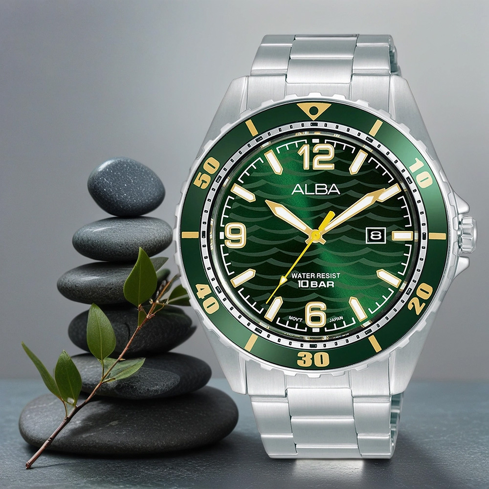 內容簡介 日系運動時尚設計,整體流暢線條時、分、秒大三針,生活防水100米滿足視覺上的享受,正是現今腕錶熱潮ALBA 日系運動風格日期視窗,全316L不鏽鋼錶殼運動風個性時尚,生活防水100米整體流暢線條打造,從輪廓到細節都充滿率性風格專業製錶同時滿足視覺上的享受,正是現今腕錶熱潮標準裝置絕對是商務休閒或任何場合配戴。※基本資料※料號:VJ32-X339G(AG8N39X1)機芯:石英錶 動力:電池※規格※錶殼:直徑約44mm 錶帶:長約19cm ※顏色※錶盤:綠色系 錶帶:銀色系錶框:銀色系,綠色系※材質※錶殼:不鏽鋼 錶帶:不鏽鋼鏡面:礦物玻璃※其他規格※錶扣:按壓式摺疊錶扣 防水:100米配件:原廠精緻錶盒,原廠保證書,原廠保固期1年。調整錶帶:可幫您調整手圍長度,請您先依個人習慣以皮尺測量後看幾公分 (但皮帶以及橡膠錶帶材質不建議您事先調整錶帶),於收件地址欄或備註欄後方加註需裁剪之手圍長度。鑑賞期注意事項:依照消費者保護法規定,線上購物消費者均享有商品到貨猶豫期之權益(並非試用期喔)。商品必須是全新狀態(不得有刮傷或拆封試戴),以及附上廠商原付所有附隨文件或資料之完整性(出貨時均有錄影詳列品項),才能享有這項服務喔。售後服務事項:商品於保固期內有故障或需做售後服務維修時(外觀不在保固內),依各品牌商之規定,以維修方式處理,一律需提供原廠保證書由原供應商送回品牌商做售後服務處理追蹤。 超出保固服務範圍或期限者,其維修,收費事宜,依原廠售後服務中心為基準。
