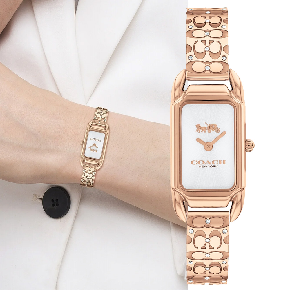 內容簡介 COACH 為女性打造長方形錶款錶帶標誌性C字Logo,加入晶鑽增添奢華感服裝搭配亮點,優雅兼具個人獨特魅力。國際時尚精品,低調奢華的品味流暢線條錶殼,時尚百搭,耀眼非凡的精緻工藝高辨識度的完美姿態,充滿紐約都會的流行風尚。※基本資料※料號:CO14504197機芯:石英錶 動力:電池※規格※錶殼:約17.5 x 28.5mm 錶帶:長約18cm※顏色※錶盤:銀色系 錶帶:玫瑰金色系 ※材質※錶殼:不鏽鋼 錶帶:不鏽鋼鏡面:礦石鏡面※其他規格※錶扣:按壓式摺疊錶扣 防水:30米配件:原廠精緻錶盒,原廠保證書,保固期2年。調整錶帶:可幫您調整手圍長度,請您先依個人習慣以皮尺測量後看幾公分 (但皮帶以及橡膠錶帶材質不建議您事先調整錶帶),於收件地址欄或備註欄後方加註需裁剪之手圍長度。鑑賞期注意事項:依照消費者保護法規定,線上購物消費者均享有商品到貨猶豫期之權益(並非試用期喔),商品必須是全新狀態(不得有刮傷或拆封試戴),以及附上廠商原付所有隨附文件或資料,維持完整性(出貨時均有錄影詳列品項),才能享有這項服務喔。售後服務事項:商品於保固期內需做售後服務維修時(外觀不在保固內),依各品牌商之規定,以維修方式處理,一律需提供原廠保證書由原供應商送回品牌商做售後服務處理追蹤。 超出保固服務範圍或期限者,其維修,收費事宜,依原廠售後服務中心為基準。