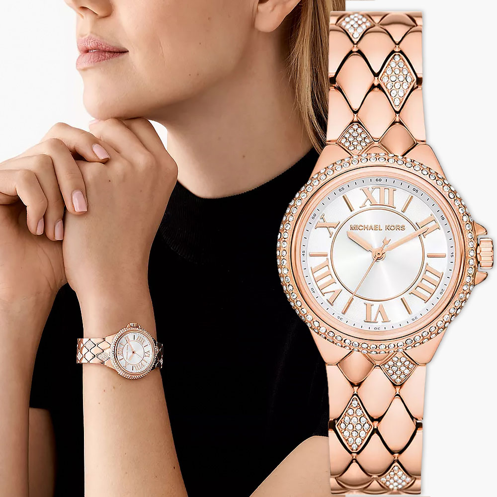 內容簡介 國際精品,美式奢華風格光耀晶鑽錶圈 錶帶,時、分、秒大三針奢華鑲鑽菱格紋錶帶,立體細節出眾獨特設計搭配,打造出迷人幹練的都會感時尚光耀的晶鑽點綴於手錶展現出貴氣獨特個性與流暢線條,時、分、秒大三針以時尚色系搭配,展現現代美學設計富有時尚流行感的設計,展現出都會時尚的迷人風采!※基本資料※料號:MK4810機芯:石英錶 動力:電池※規格※錶殼:直徑約33mm 錶帶:長約18cm※顏色※錶盤:白色系 錶帶:玫瑰金色系※材質※錶殼:不鏽鋼 錶帶:不鏽鋼鏡面:礦石鏡面※其他規格※錶扣:按壓式摺疊錶扣 防水:50米。保固期:2年調整錶帶:可幫您調整手圍長度,請您先依個人習慣以皮尺測量後看幾公分 (但皮帶以及橡膠錶帶材質不建議您事先調整錶帶),於收件地址欄或備註欄後方加註需裁剪之手圍長度。鑑賞期注意事項:依照消費者保護法規定,線上購物消費者均享有商品到貨猶豫期之權益(並非試用期喔),商品必須是全新狀態(不得有刮傷或拆封試戴),並附上所有廠商原隨附文件資料保持完整性(出貨時均有錄影詳列品項),才能享有退換貨服務喔。售後服務事項:商品於保固期內需做售後服務維修時,依各品牌商之規定以維修方式處理,一律需提供原廠保證書由原供應商送回品牌商做售後服務處理追蹤。超出保固服務範圍或期限者,其維修收費事宜,依原廠售後服務中心為基準。