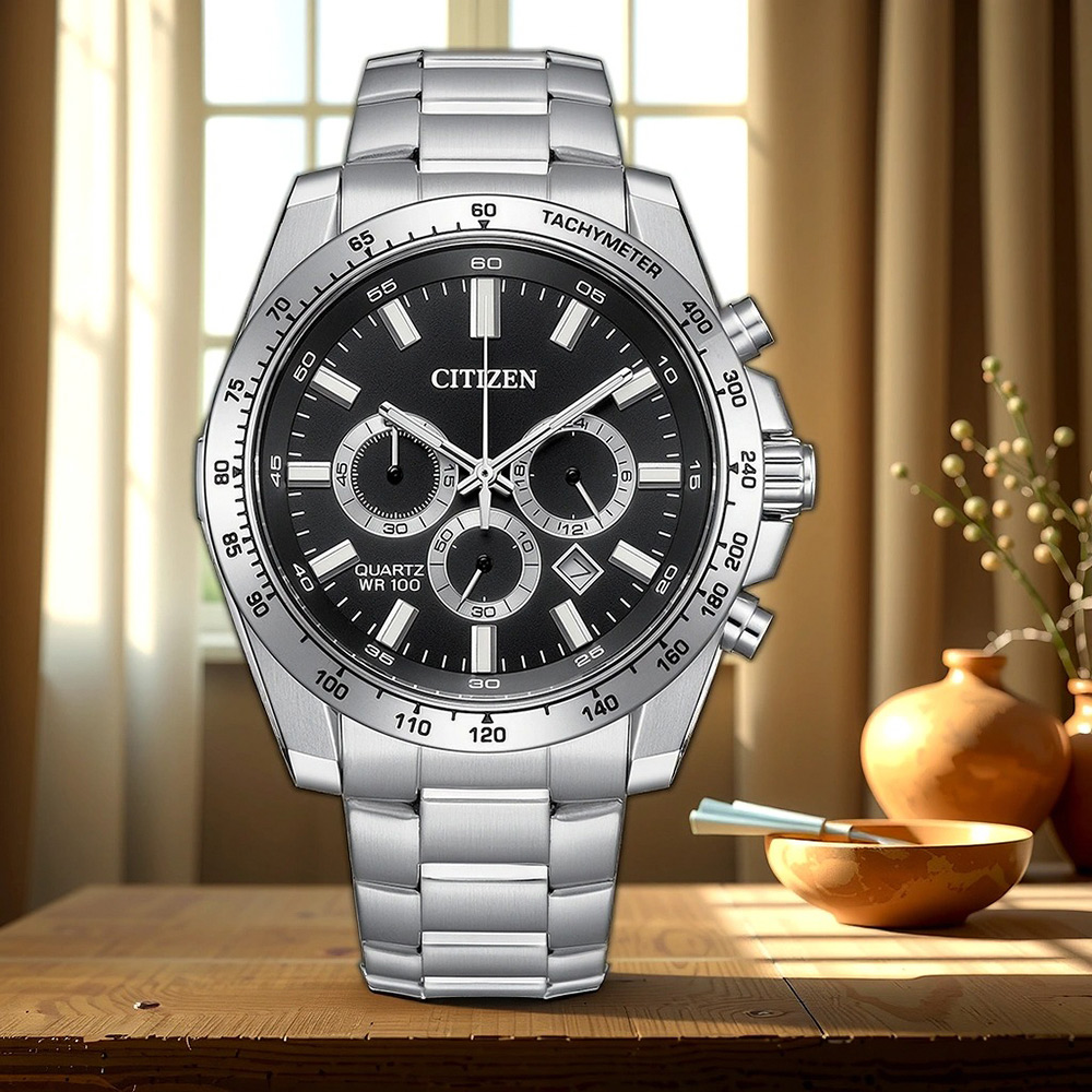 商品名 / | CITIZEN 星辰 Chronograph 紳男三眼計時手錶-銀x黑 44mm (AN8230-59E) |