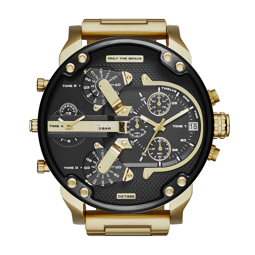 內容簡介 原廠公司貨,時尚經典潮牌四時區獨立顯示,具備計時功能現代工業風格,散發前衛時尚的青春氣息 Mr. Daddy 2.0 系列以超大錶徑為特點,強烈機械感與多層次結構設計聞名將「大膽、不妥協」的品牌精神發揮到極致獨特創作錶徑高達57mm,搭載四時區獨立顯示功能,結合計時碼錶與細膩雕刻細節讓每一面向都充滿張力與視覺衝擊。右側錶盤具備24小時顯示及計時功能盤,3點鐘方向日期視窗左側7、9、11點鐘方向配置三個獨立時間盤,可分別設置三個不同時區浮誇系的超大錶徑尺寸,不只是時間的容器,更是一種框架思維的挑戰。來自義大利的 Diesel,從不隨波逐流,而是領導潮流、挑戰常規品牌以大膽不羈的設計風格,成為個性配戴者的時代象徵手錶延續品牌精神,以獨特的設計手法,解構與重組傳統製錶框架,打造多層次視覺空間感。展現品牌特有的時尚指標——既叛逆、粗獷,卻又蘊含細膩的設計巧思。這不只是計時工具,更是讓你在群眾中脫穎而出的自我宣言每一只 Diesel 手錶,都代表一種態度:不隨俗、不妥協,敢做自己。※基本資料※料號:DZ7333機芯:石英錶 動力:電池※規格※錶殼:直徑約57mm 鏡面:直徑約51mm錶帶:寬約27mm,長約19cm厚度:約14mm 重量:約239g※顏色※錶盤:黑色系 錶帶:金色系錶框:黑色系,金色系※材質※錶殼:不鏽鋼 錶帶:不鏽鋼鏡面:礦物玻璃※其他規格※錶扣:按壓式摺疊錶扣 防水:30米功能:日期視窗,計時功能,多時區顯示配件:原廠精緻錶盒,原廠保證書(卡),保固期2年。調整錶帶:可幫您調整手圍長度,請您先依個人習慣以皮尺測量後看幾公分 (但皮帶以及橡膠錶帶材質不建議您事先調整錶帶),於收件地址欄或備註欄後方加註需裁剪之手圍長度。鑑賞期注意事項:依照消費者保護法規定,線上購物消費者均享有商品到貨猶豫期之權益(並非試用期喔),商品必須是全新狀態(不得有刮傷或拆封試戴),並附上所有廠商原隨附文件資料保持完整性(出貨時均有錄影詳列品項),才能享有退換貨服務喔。售後服務事項:商品於保固期內需做售後服務維修時,依各品牌商之規定以維修方式處理,一律需提供原廠保證書由原供應商送回品牌商做售後服務處理追蹤。超出保固服務範圍或期限者,其維修收費事宜,依原廠售後服務中心為基準