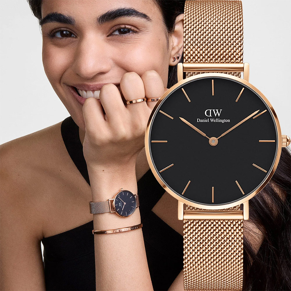 內容簡介 原廠公司貨,北歐極簡美學日本石英機芯,簡約時與分雙針顯示採用316L不鏽鋼錶殼錶帶材質Petite Melrose 黑色錶盤與玫瑰金色米蘭帶錶帶的經典搭配,將簡約設計演繹得剛柔並濟32 mm的纖巧錶殼搭配6 mm的極致薄型設計,佩戴輕盈貼合,優雅不張揚黑色錶盤凸顯玫瑰金指針與時標的光芒,低調中流露出獨立女性的自我風格Daniel Wellington 於 2011 年創立於瑞典烏普薩拉品牌靈感源於一位英倫紳士,著裝風格潔淨無暇、低調謙遜創始人深受啟發將其融合北歐簡約美學與傳統時計精神打造出輕薄錶殼、簡潔錶盤兼具時尚與實用的經典之作無論正裝或休閒穿搭,DW 都能展現低調優雅的時尚魅力以「極簡設計」為核心理念,迅速成為受年輕族群歡迎的時尚配件品牌!※基本資料※料號:DW00100161機芯:石英錶 動力:電池※規格※錶殼:直徑約32mm 鏡面:直徑約30mm錶帶:寬約14mm,長約18cm厚度:約6mm 重量:約42g※顏色※錶盤:黑色系 錶帶:玫瑰金色系錶框:玫瑰金色系※材質※錶殼:不鏽鋼 錶帶:不鏽鋼鏡面:礦物玻璃※其他規格※錶扣:活動式錶扣 防水:30米配件:原廠精緻錶盒,原廠保證書(卡),保固期2年。調整錶帶:可幫您調整手圍長度,請您先依個人習慣以皮尺測量後看幾公分 (但皮帶以及橡膠錶帶材質不建議您事先調整錶帶),於收件地址欄或備註欄後方加註需裁剪之手圍長度。鑑賞期注意事項:依照消費者保護法規定,線上購物消費者均享有商品到貨猶豫期之權益(並非試用期喔),商品必須是全新狀態(不得有刮傷或拆封試戴),並附上所有廠商原隨附文件資料保持完整性(出貨時均有錄影詳列品項),才能享有退換貨服務喔。售後服務事項:商品於保固期內需做售後服務維修時,依各品牌商之規定以維修方式處理,一律需提供原廠保證書由原供應商送回品牌商做售後服務處理追蹤。超出保固服務範圍或期限者,其維修收費事宜,依原廠售後服務中心為基準