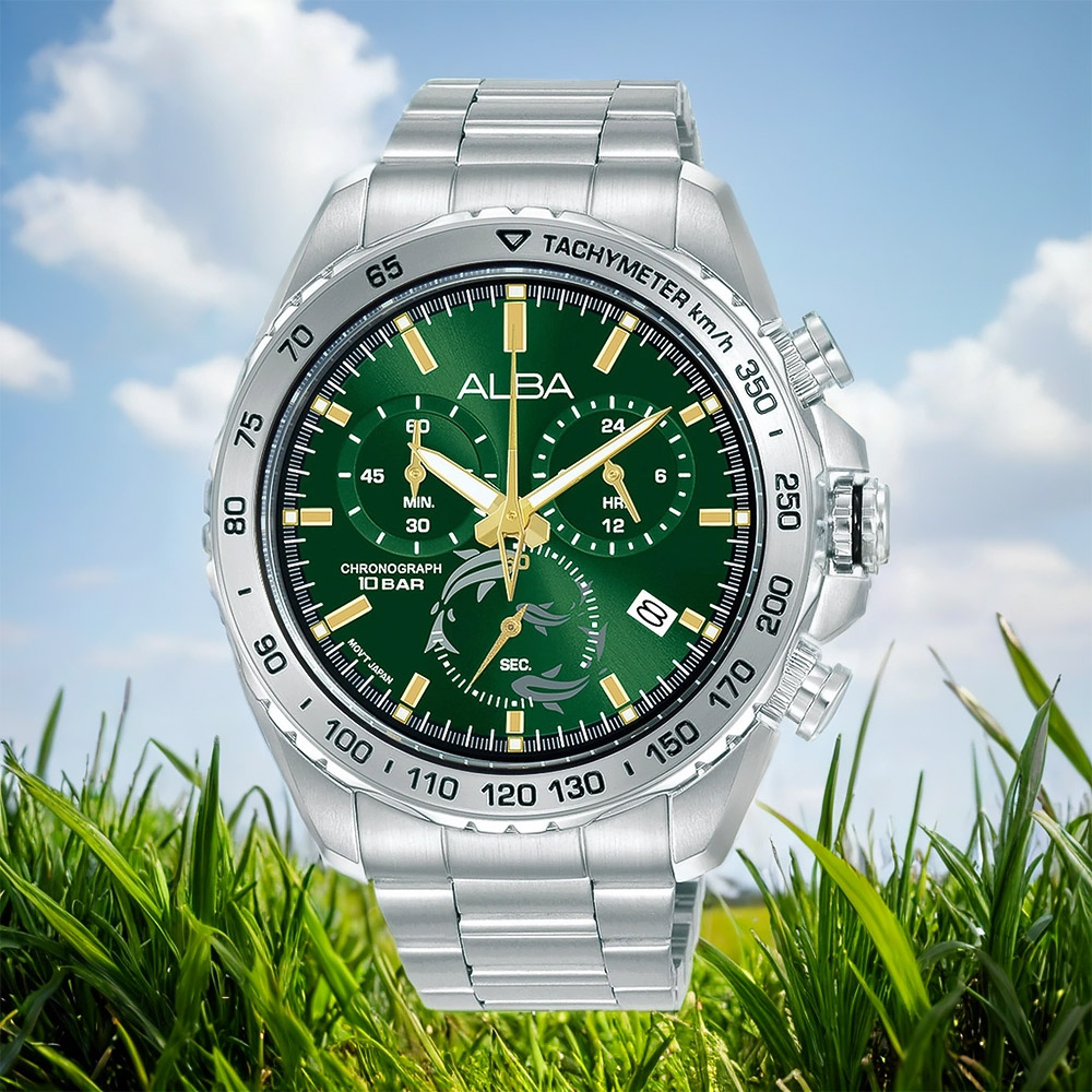 內容簡介 日系型男時尚,整體流暢線條東京設計運動風,錶盤細緻紋路滿足視覺上的享受,正是現今腕錶熱潮ALBA日系原創風格,具備計時功能 日期視窗 24小時顯示全316L不鏽鋼材質錶殼,精製耐用整體流暢線條打造,從輪廓到細節都充滿率性風格專業製錶同時滿足視覺上的'享受,正是現今腕錶熱潮標準裝置絕對是商務休閒或任何場合配戴※基本資料※料號:VK68-X004G(AX7013X1)機芯:石英錶 動力:電池※規格※錶殼:直徑約44mm 鏡面:直徑約35mm錶帶:寬約22mm,長約19cm厚度:約12mm 重量:約139g※顏色※錶盤:綠色系 錶帶:銀色系錶框:銀色系※材質※錶殼:不鏽鋼 錶帶:不鏽鋼鏡面:礦物玻璃※其他規格※錶扣:按壓式摺疊錶扣 防水:100米配件:原廠精緻錶盒,原廠保證書,原廠保固期1年。調整錶帶:可幫您調整手圍長度,請您先依個人習慣以皮尺測量後看幾公分 (但皮帶以及橡膠錶帶材質不建議您事先調整錶帶),於收件地址欄或備註欄後方加註需裁剪之手圍長度。鑑賞期注意事項:依照消費者保護法規定,線上購物消費者均享有商品到貨猶豫期之權益(並非試用期喔)。商品必須是全新狀態(不得有刮傷或拆封試戴),以及附上廠商原付所有附隨文件或資料之完整性(出貨時均有錄影詳列品項),才能享有這項服務喔。售後服務事項:商品於保固期內有故障或需做售後服務維修時(外觀不在保固內),依各品牌商之規定,以維修方式處理,一律需提供原廠保證書由原供應商送回品牌商做售後服務處理追蹤。 超出保固服務範圍或期限者,其維修,收費事宜,依原廠售後服務中心為基準。
